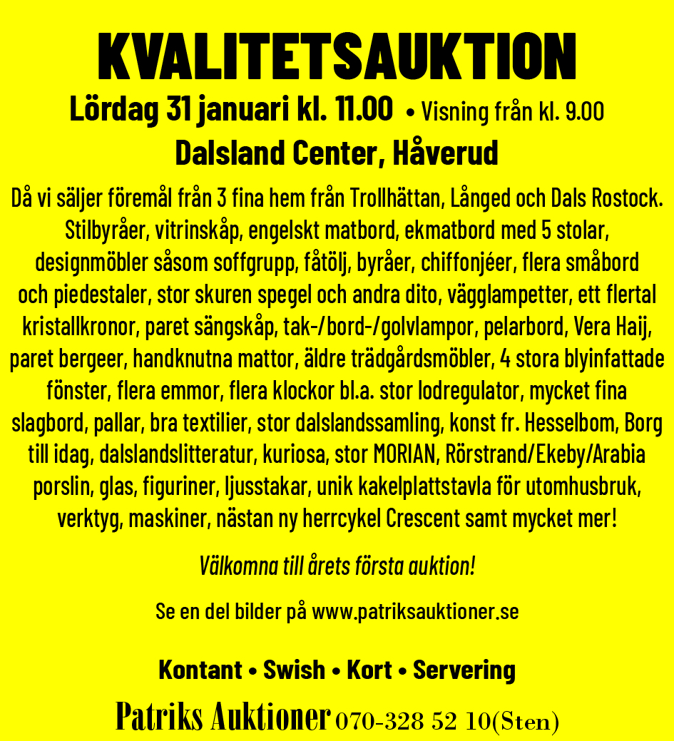 Då vi säljer föremål från 3 fina hem från Trollhättan, Långed och Dals Rostock