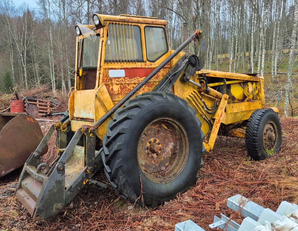 En jordbrukstraktor med frontlastare finns på plats för lastning.