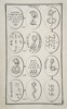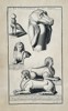 Stomme av bok, fast stoppad rygg och sits, klädsel av brunt fårskinn, brännmärkt, sitthöjd ca 42 cm
