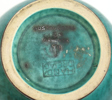 Auktioner Keramik & Porslin Kåge, Wilhelm för Gustavsberg, vas, grönglaserat stengods med silverdekor, Argenta, daterad "P" (1946), h 14 cm