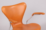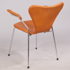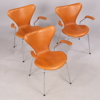 Karmstolar, 3 st, "Sjuan", Fritz Hansen, Danmark, förkromad benställning, klädd i naturfärgat skinn