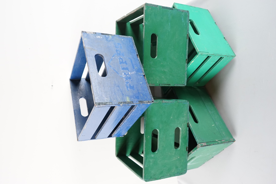 Backar, 5 st, trä, bl.a Pripps, 1900-tal.