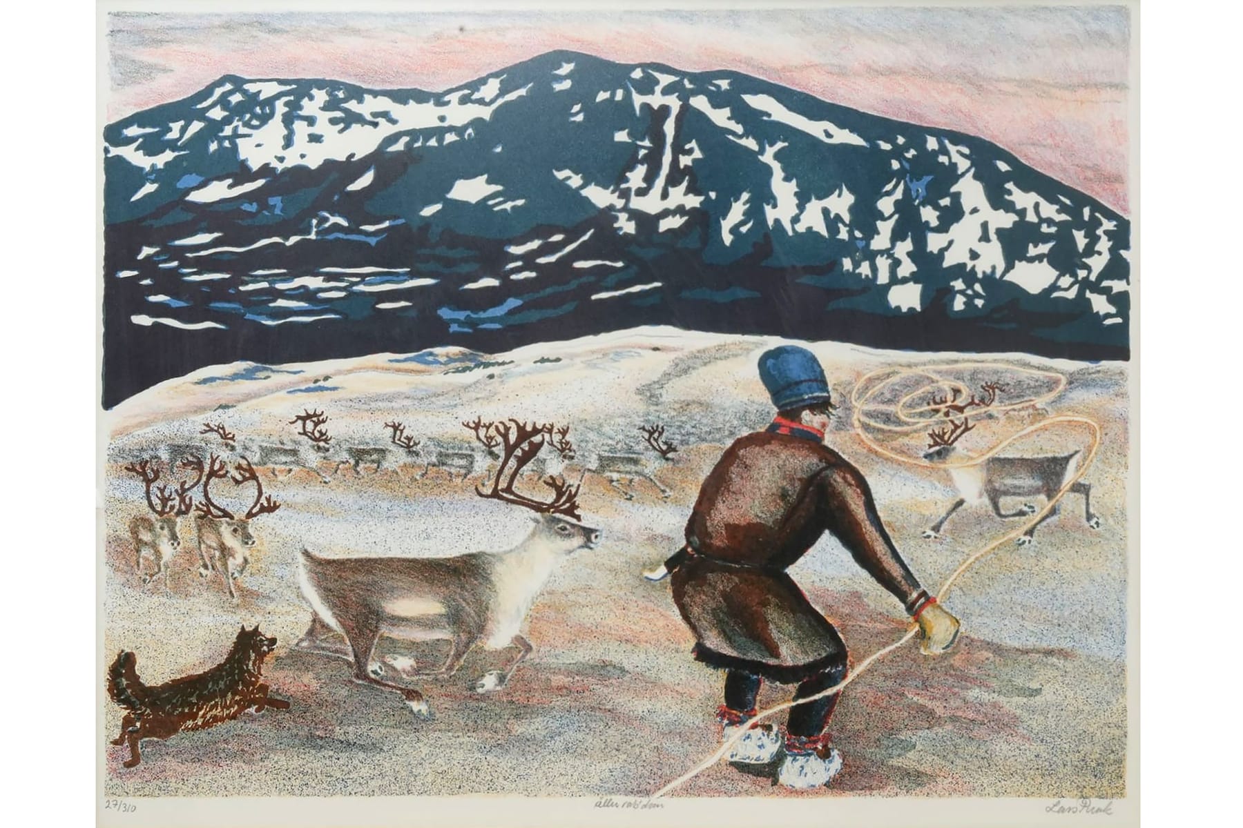Bilder Ebbe Sjölin, "Dragörgäss", handkolorerat tryck, nr 18/300, signerad.