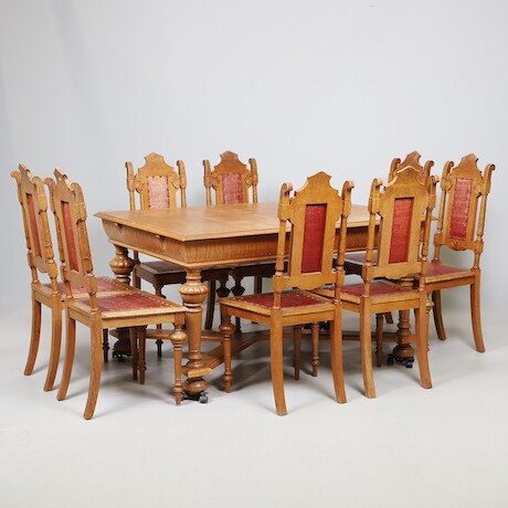 Bilder Matgrupp ek 1800-tal renässansstil, bord 148 X 110 H=77 och 8 stolar