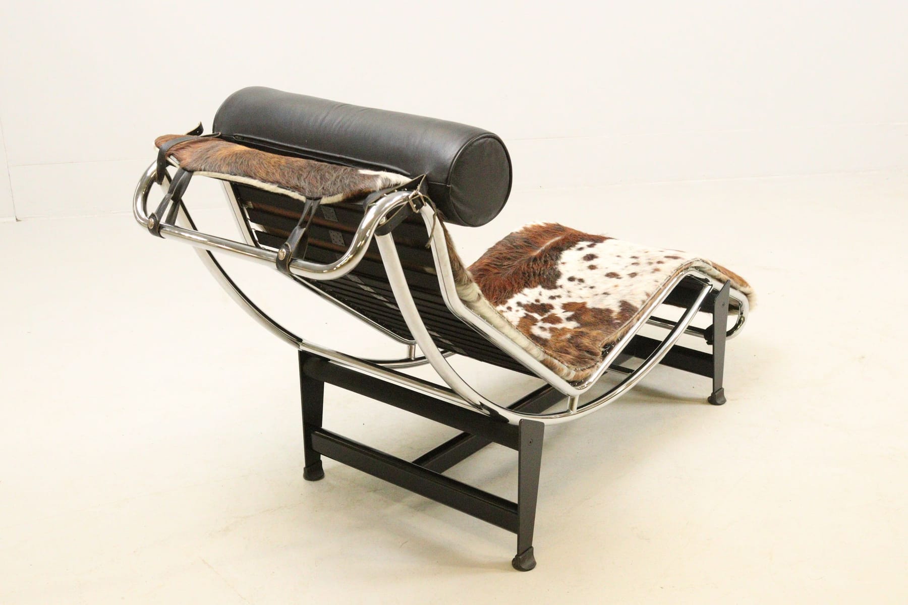 Vilstol, dyna av kohud, svart huvudkudde