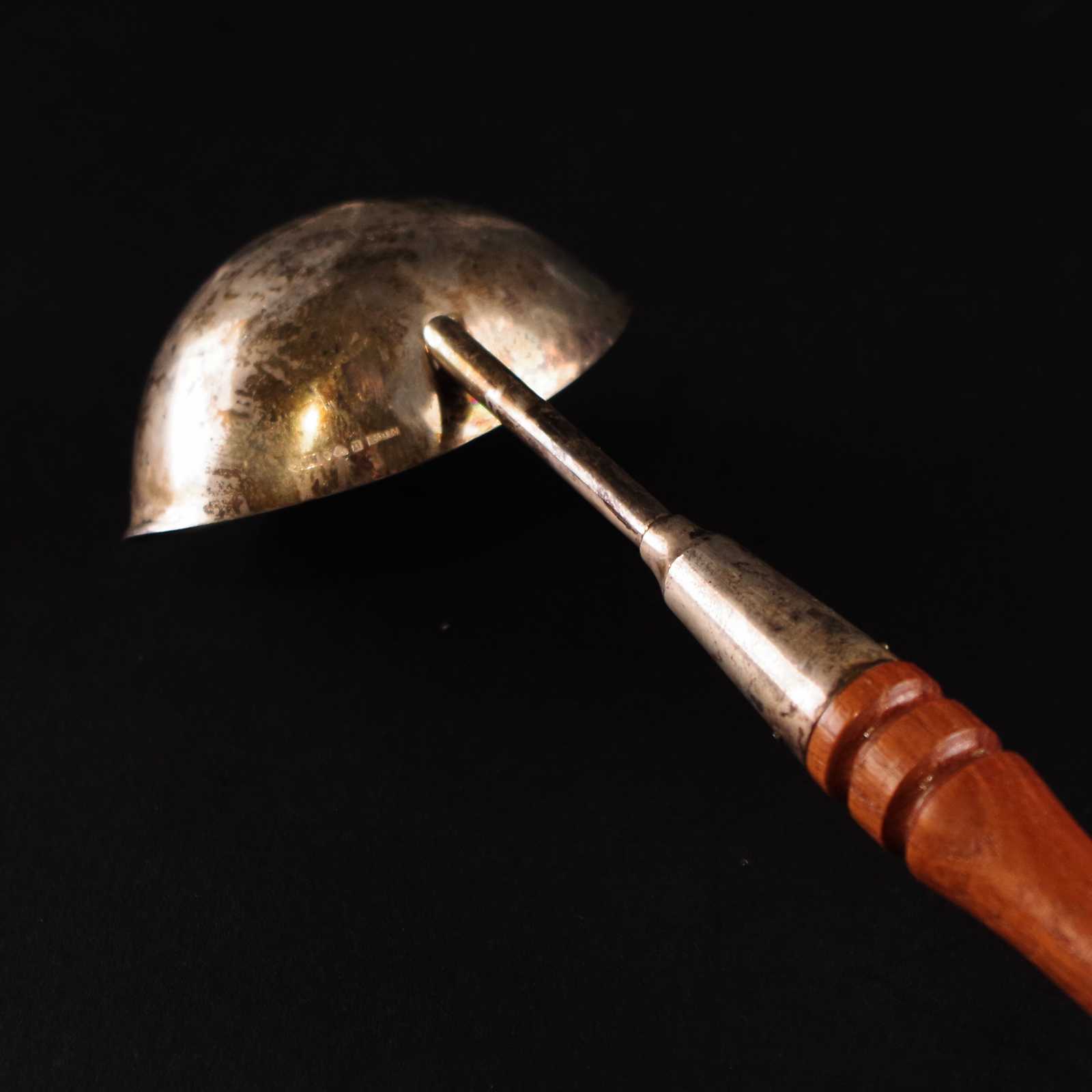 Auktioner Guld, Silver & Smycken SILVERSLEV, silver/trä, stämplad MG AB, 1967, L: 33 cm, totalvikt: 65 gram