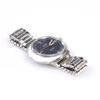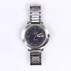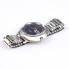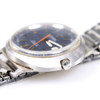 Blå urtavla med applicerade stavindex och applicerad logotyp, vita visare med lysmassa, kontrasterande röd sekundvisare