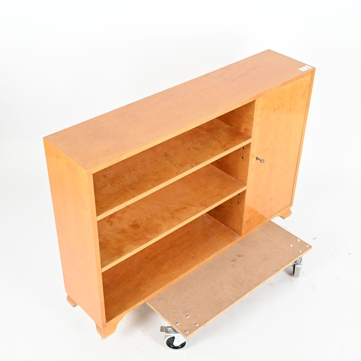 Låg bokhylla, polerad björk, 1940 tal