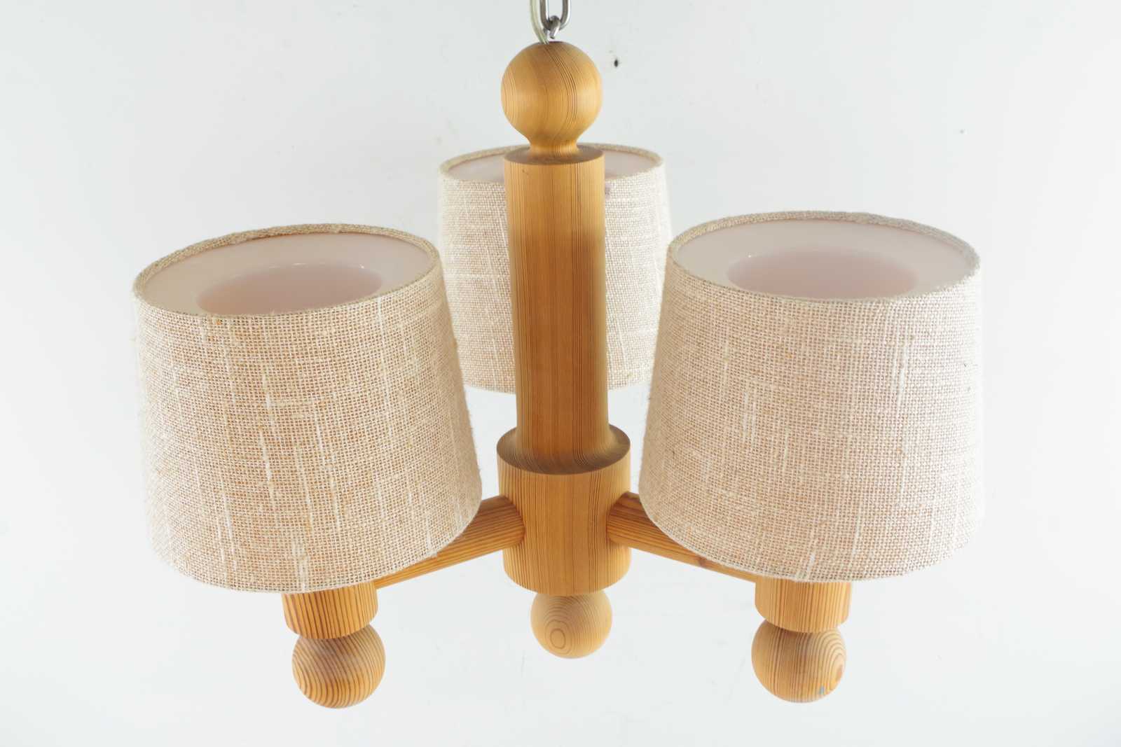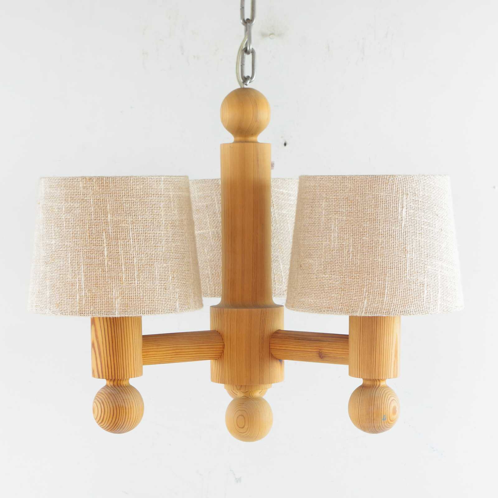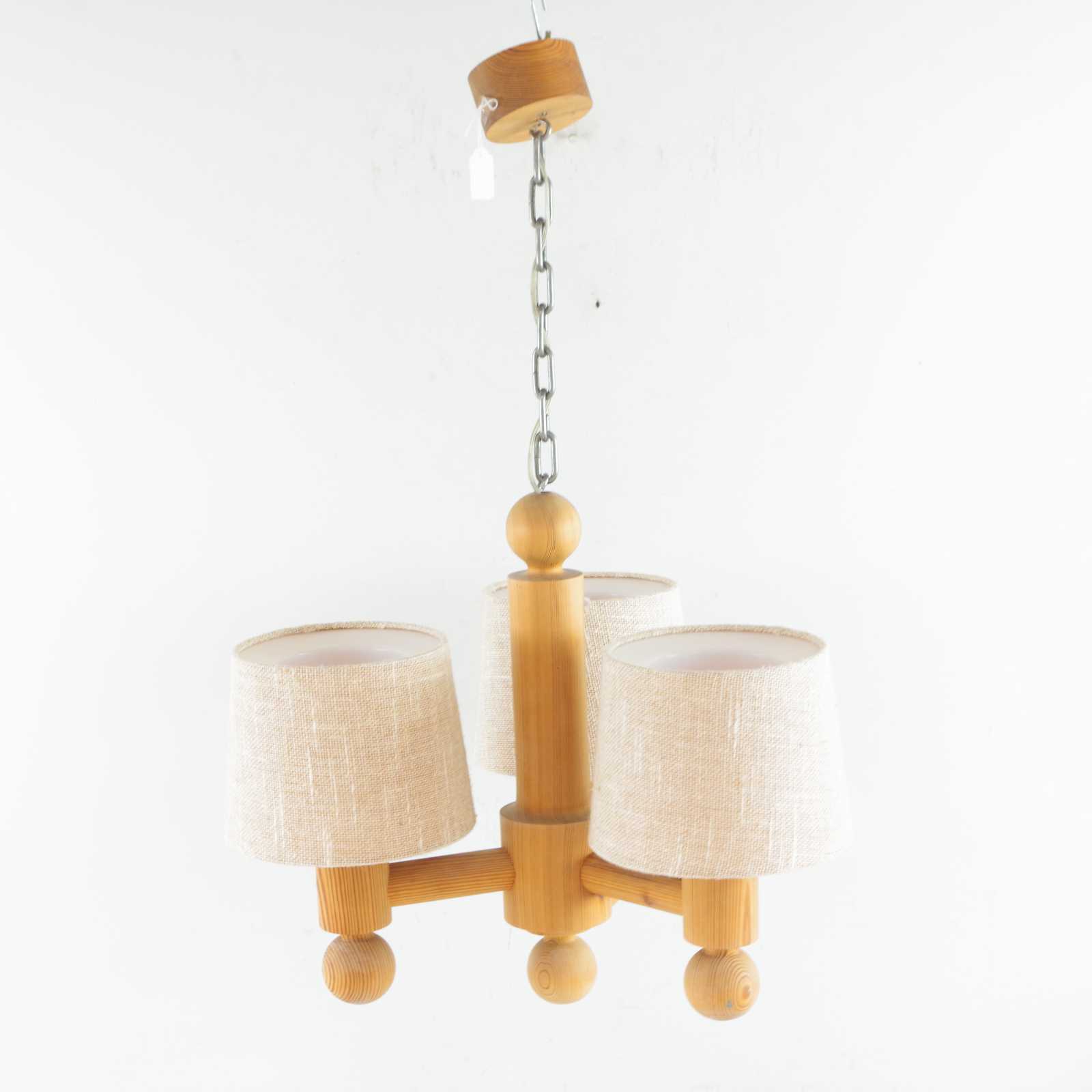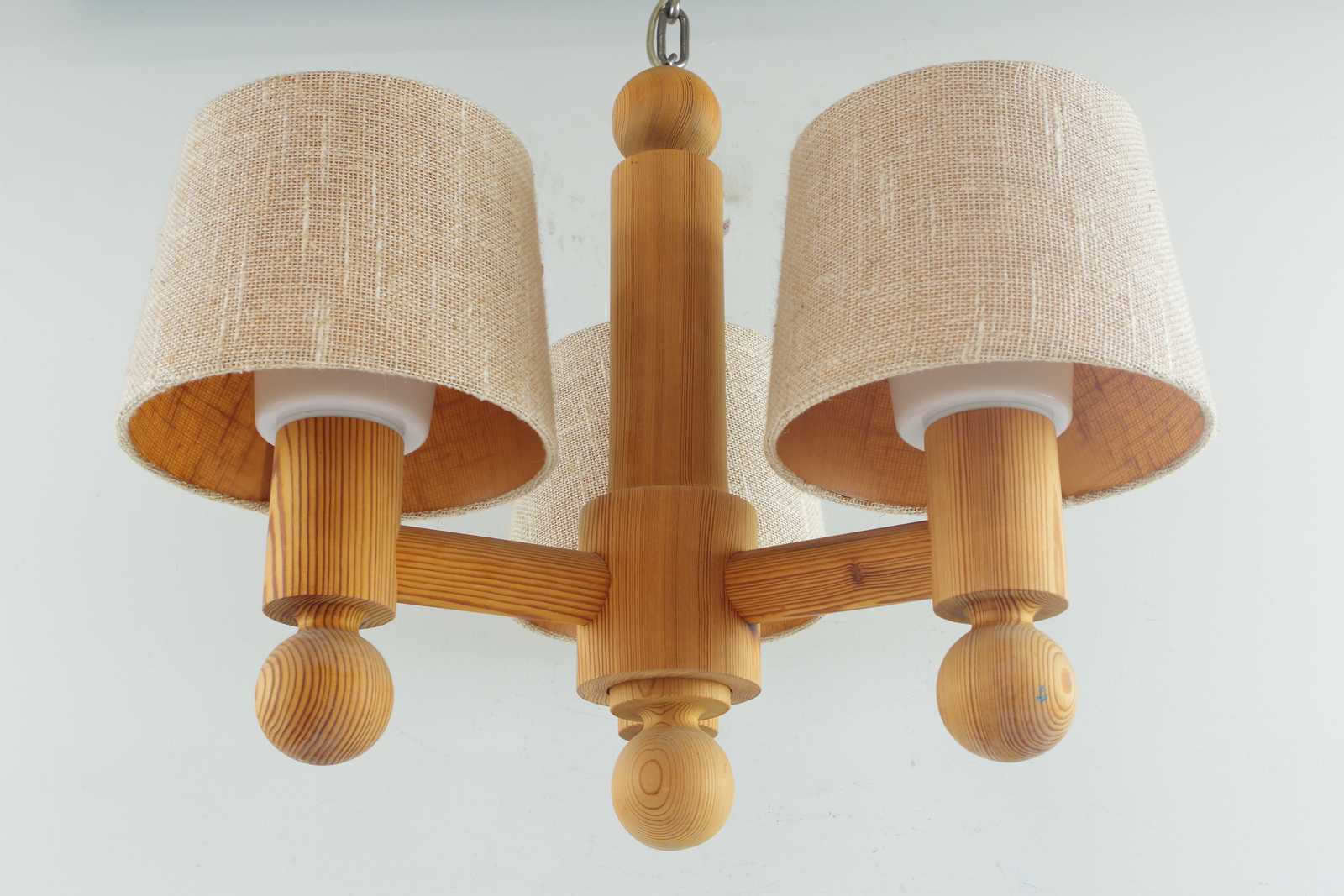 Bilder TAKLAMPA Uno & Östen Kristiansson, Luxus, i furu, skärmar i plast & tyg. H:48cm D:55cm