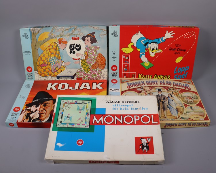 Sällskapspel, Monopol, Kojak, Kalle Ankas lopp spel, Jorden runt i 80 dagar, Go, 5st