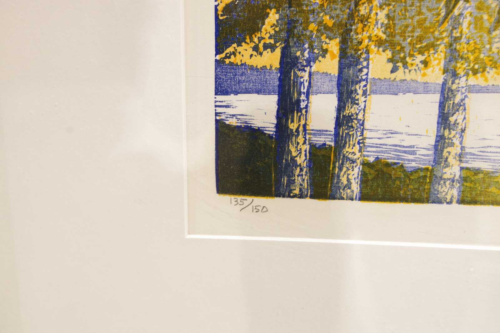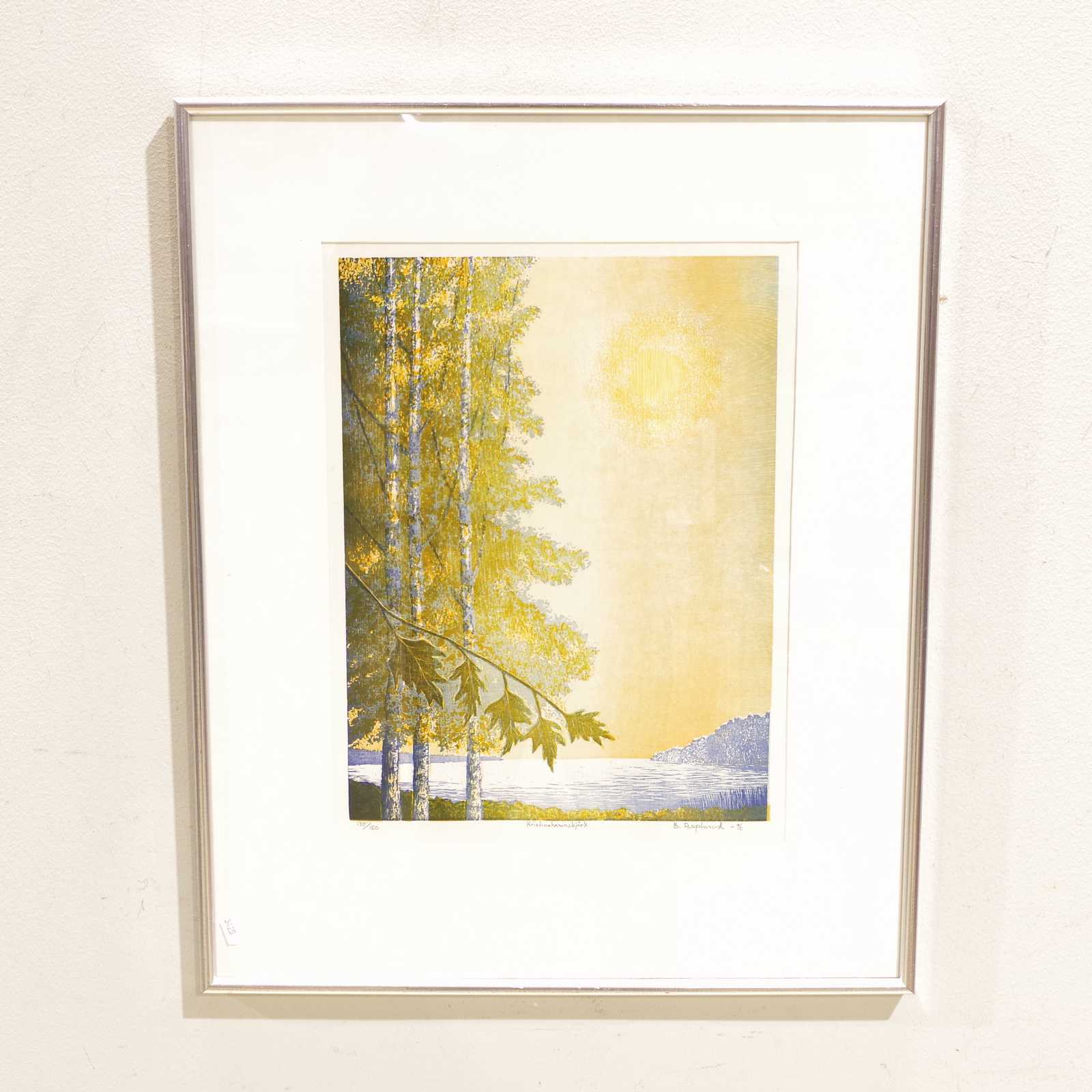 Auktioner Konst & Grafik TAVLA, Bengt Asplund, "Kristinehamnsbjörk", litografi, signerad och numrerad 135/150. 32x42cm bildytans mått.