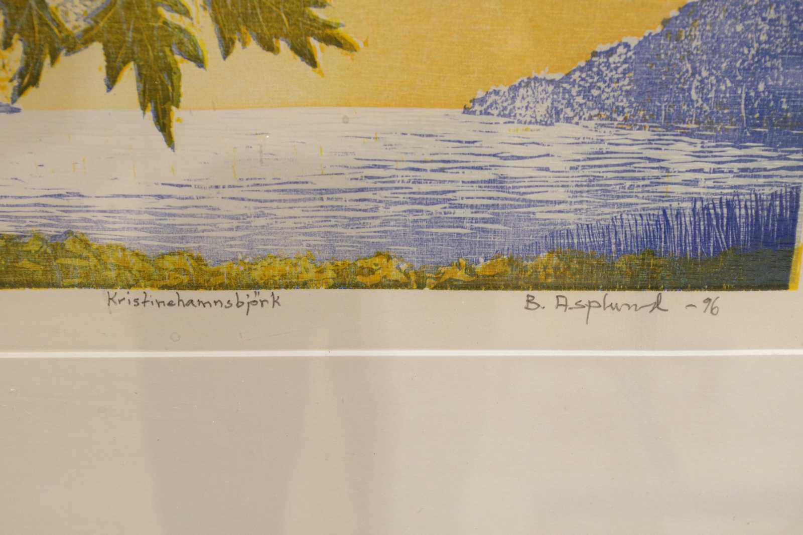 TAVLA, Bengt Asplund, "Kristinehamnsbjörk", litografi, signerad och numrerad 135/150. 32x42cm bildytans mått.