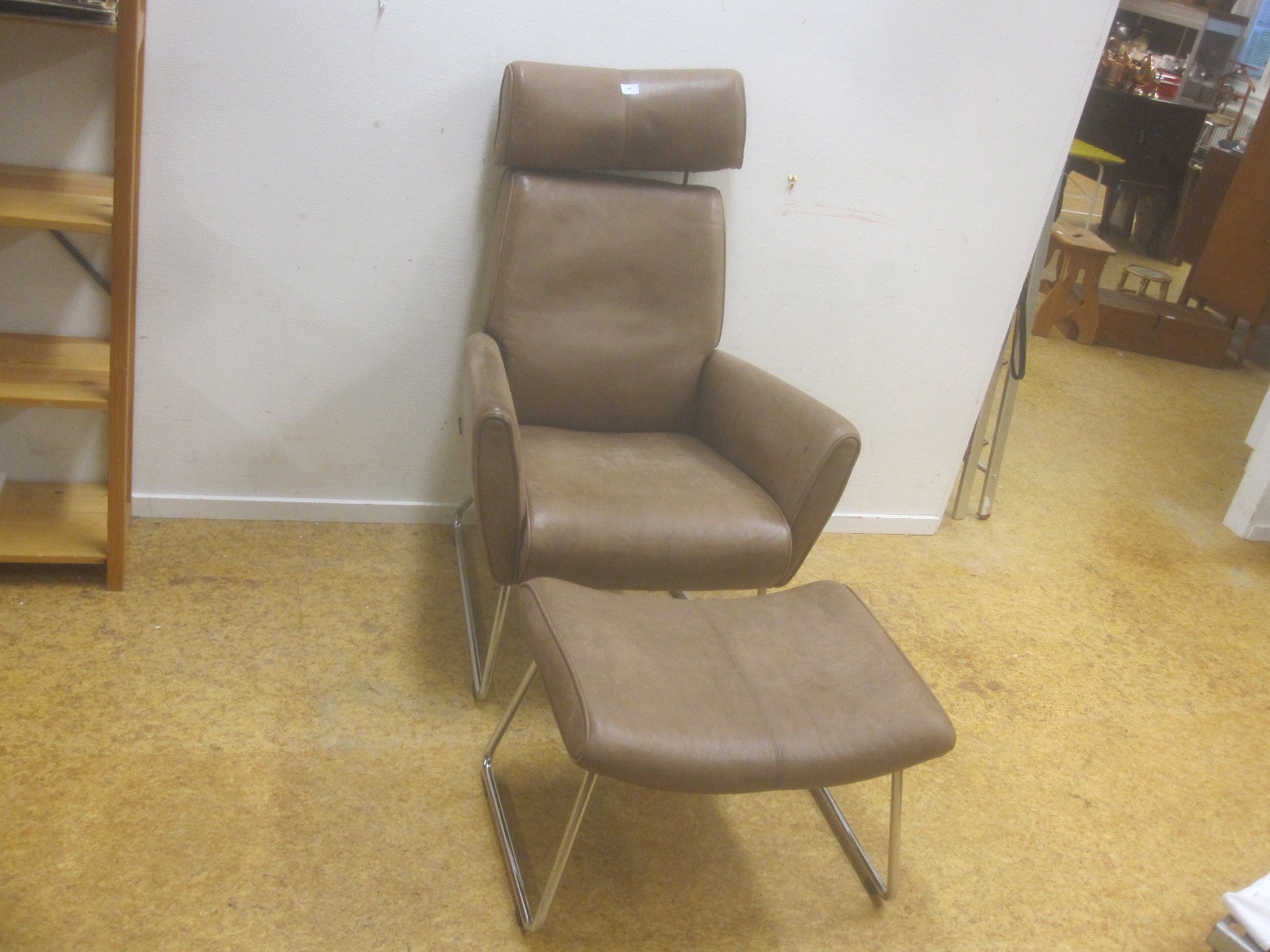 Bilder Fåtölj, brunt skinn och trä, 1960 tal