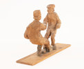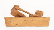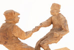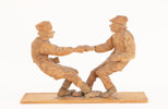 Träskuren figurgrupp, "Fingerkrok". Signerad "Axel Petersson Döderhultarn Oskarshamn". Med numrering och etikett "87".