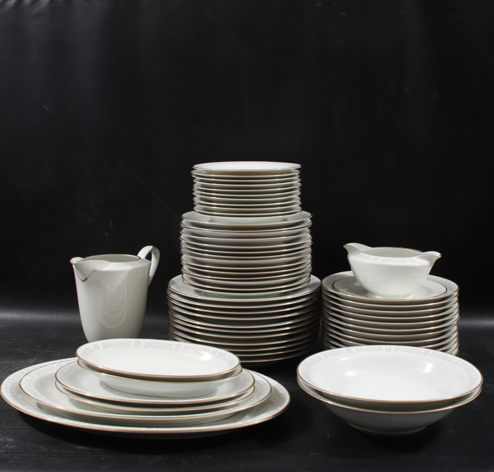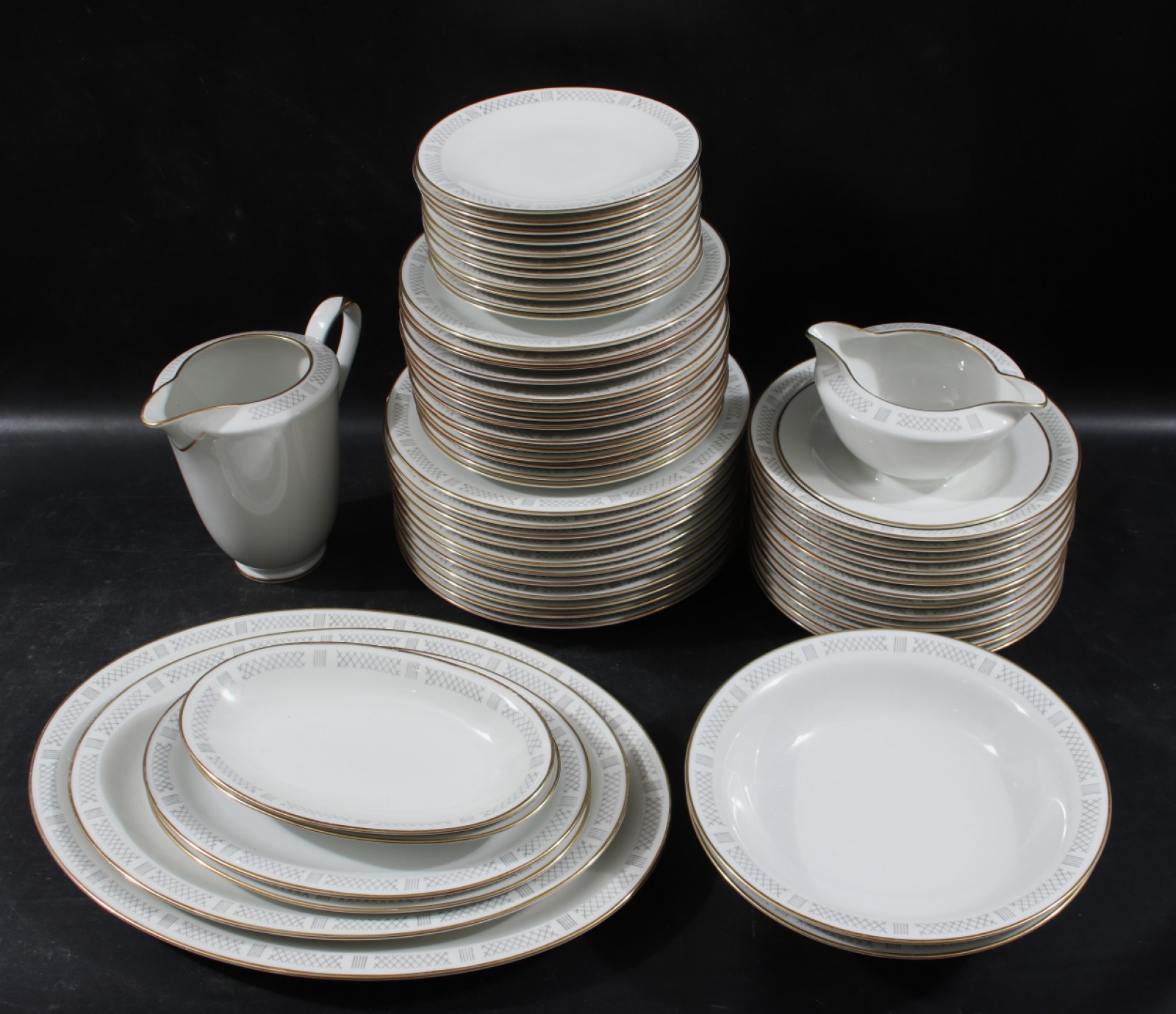 58 delar, 11st mattallrikar, 12st djupa tallrikar, 14st desserttallrikar, 11st assietter, 6st uppl.fat, 2st skålar, 1st såskanna samt 1st kanna/tillbringare. (vån3)