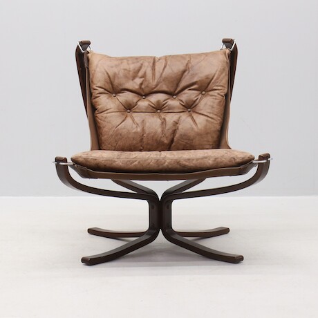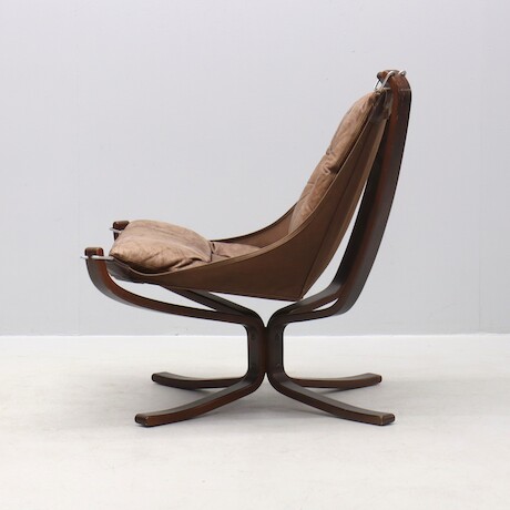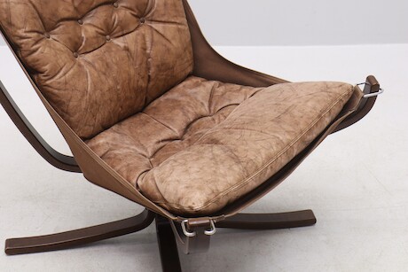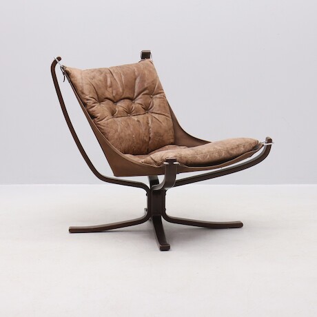 Bilder Sigurd Ressel, fåtölj, "Falcon chair", Vatne Möbler, Norge, 1970-tal. böjträ och skinn