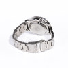 Svart urtavla med applicerade index fyllda med lysmassa, dag-/datumvisning kl. 3, silverfÀrgade visare med lysmassa