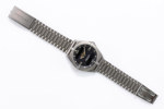 Ca 40 mm (46,5 mm lug-to-lug), titan, klämboett, signerad krona, safirglas