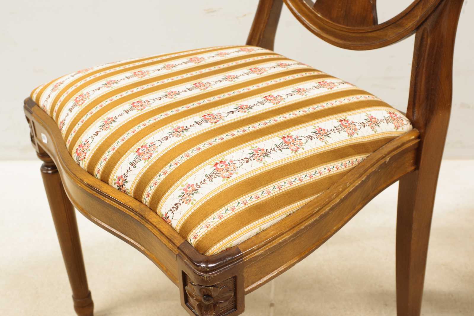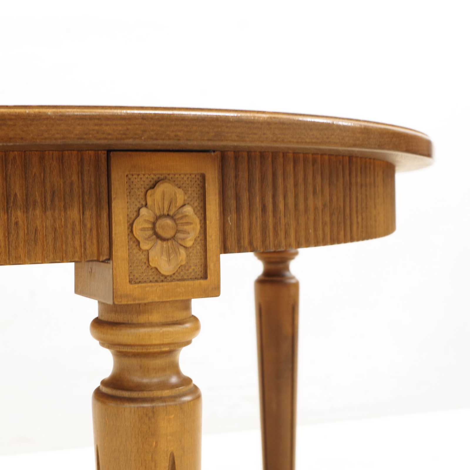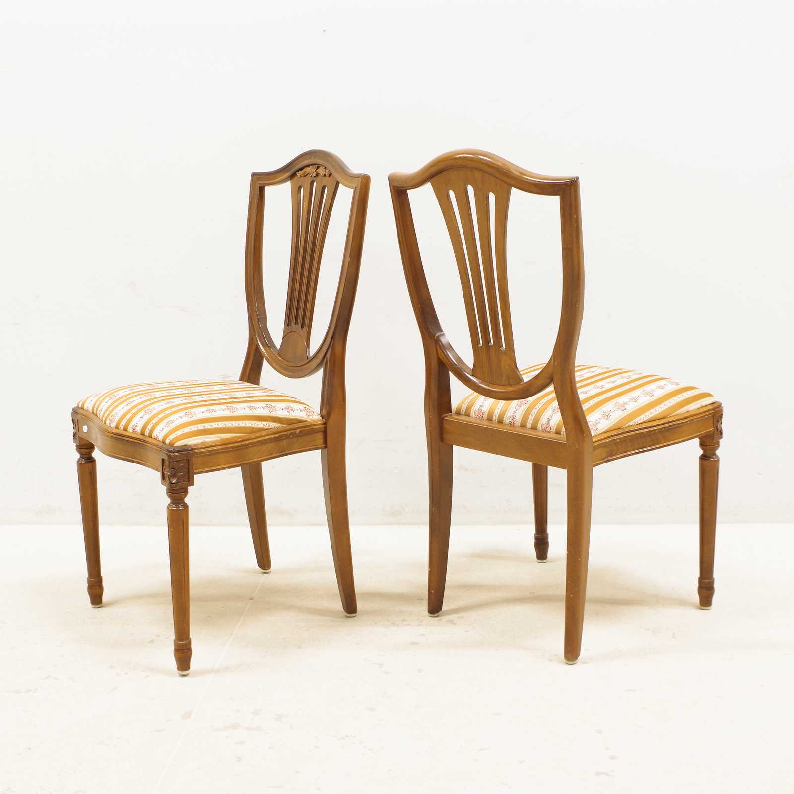 Bilder MATGRUPP "Axet" Gustaviansk stil, 1900 talets andra hälft, stolar 4st & bord H:74x 100x 140cm + 2st iläggskivor 48cm/st (bruksslitage, skavmärken förekommer)