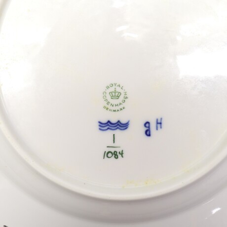 Bilder Tallrikar 12 st "Musselmalet" helblond, Royal Copenhagen, Danmark, porslin, modell: 1084, diameter 25 cm