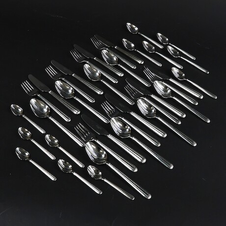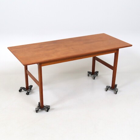 Teak. Dubbla dörrar. Fem lådor. Nyckel finns.