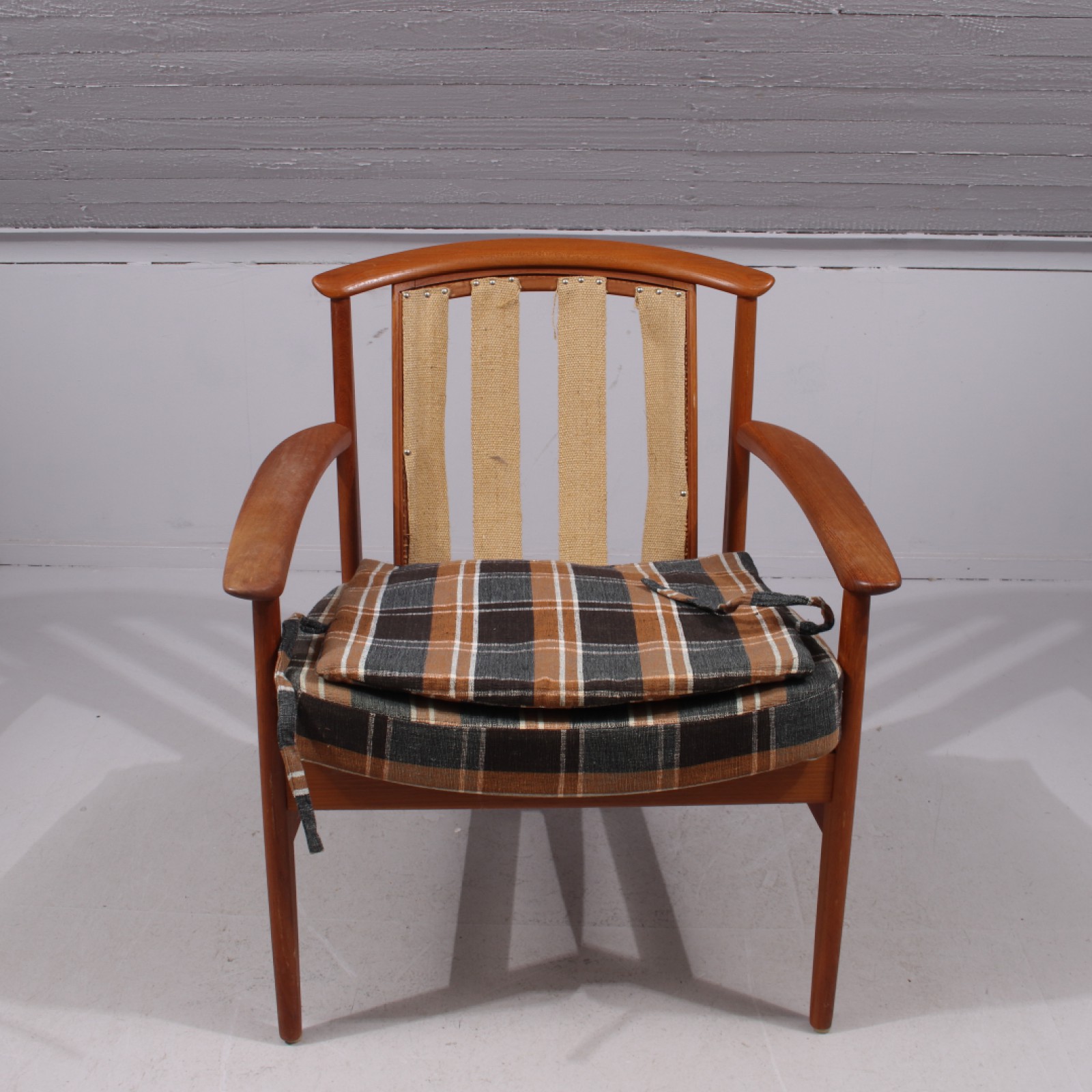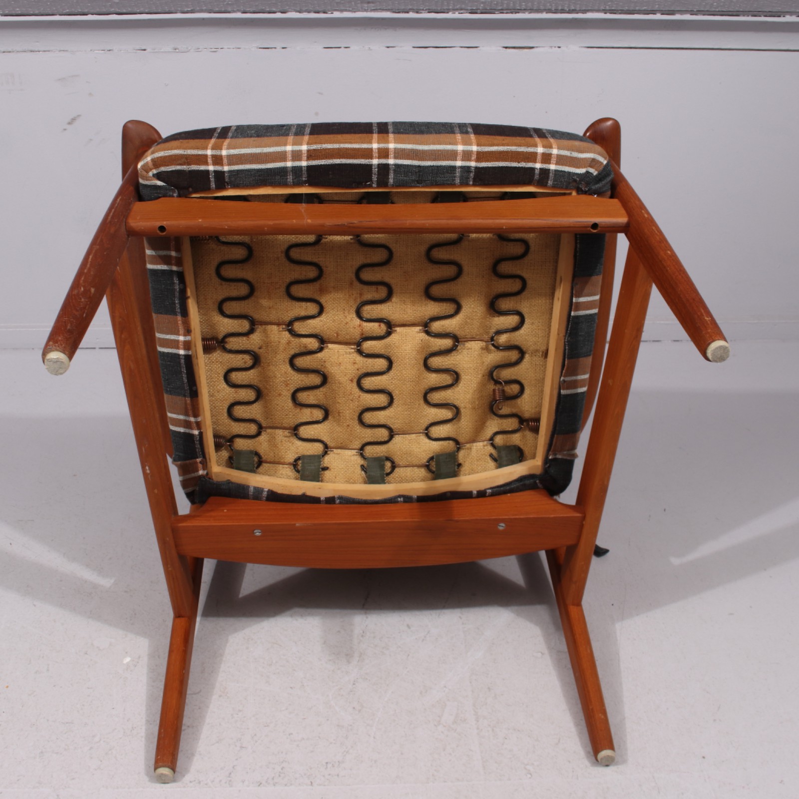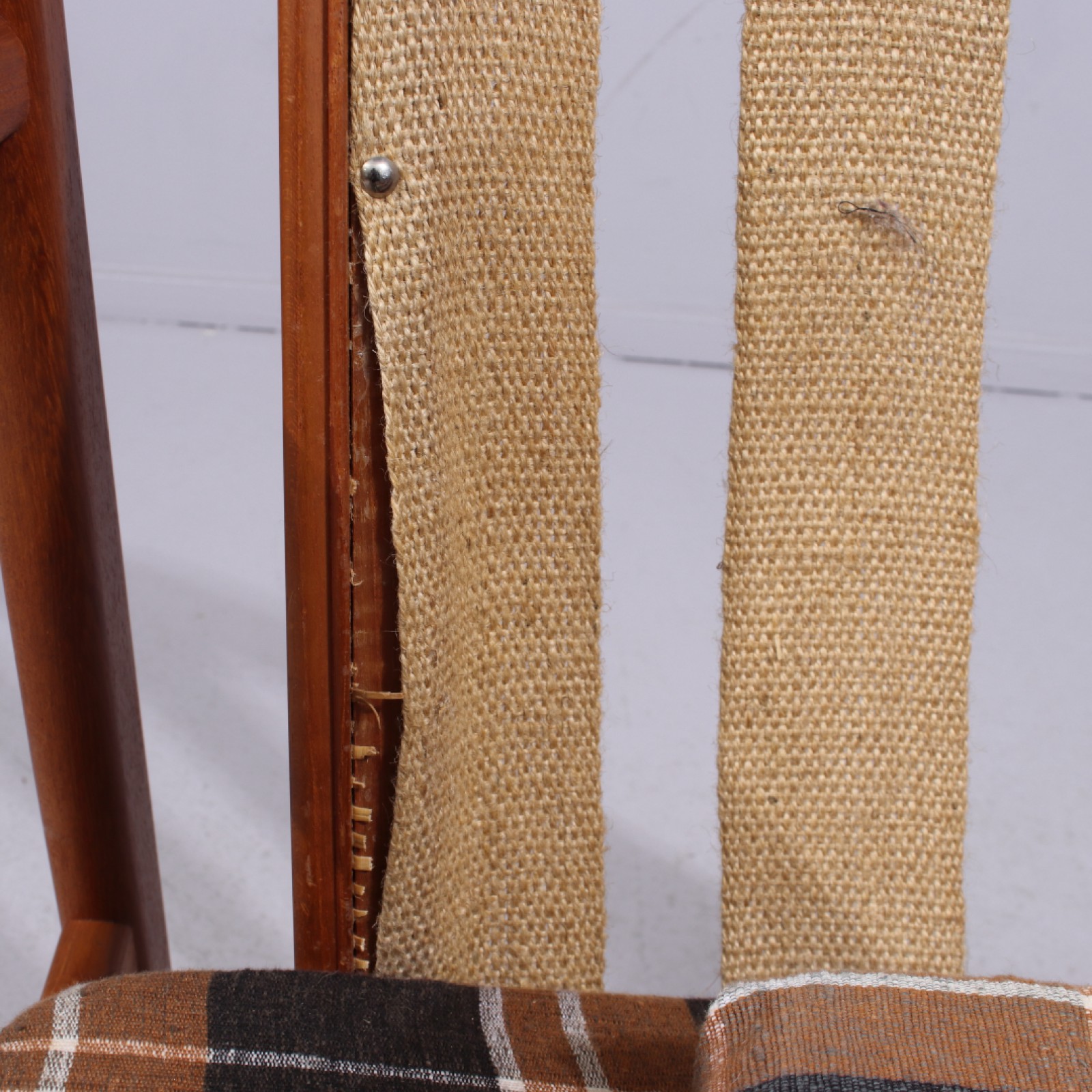 Teak, 1950,60-tal, rygg tidigare med flätad rotting nu med sadelgjord och ryggdyna, Rh.78, B.68, Sh.38-42 cm. (vån3)