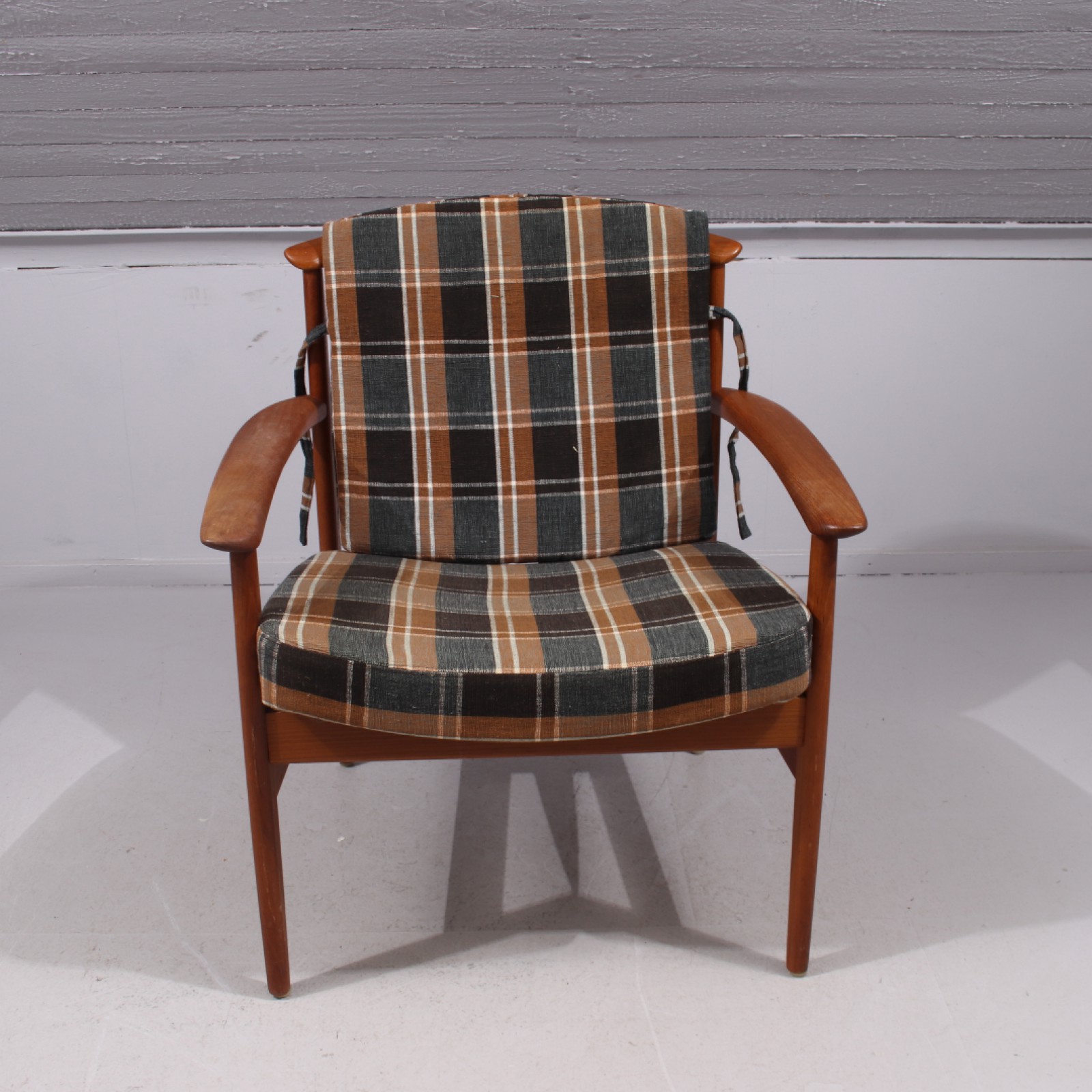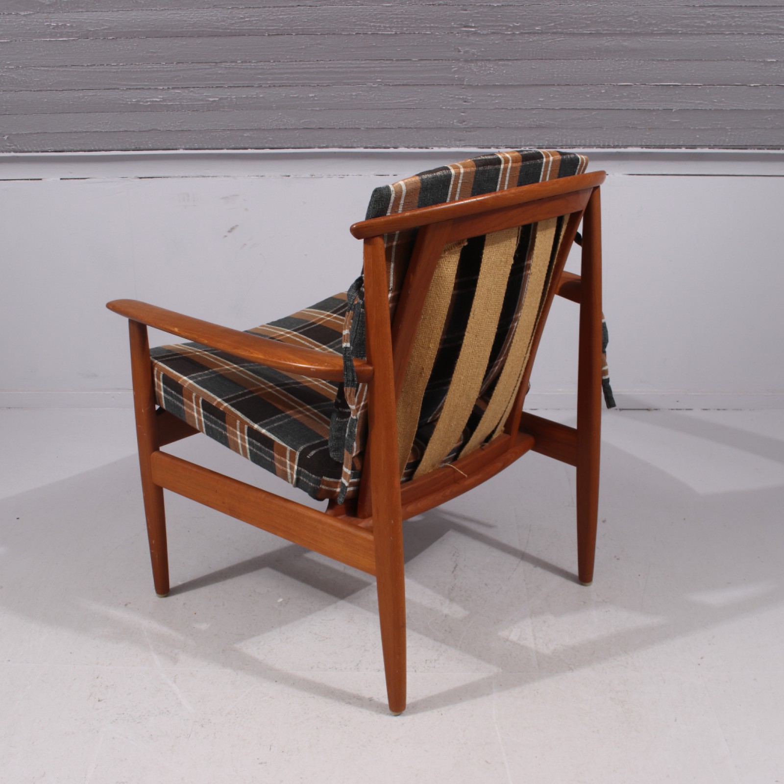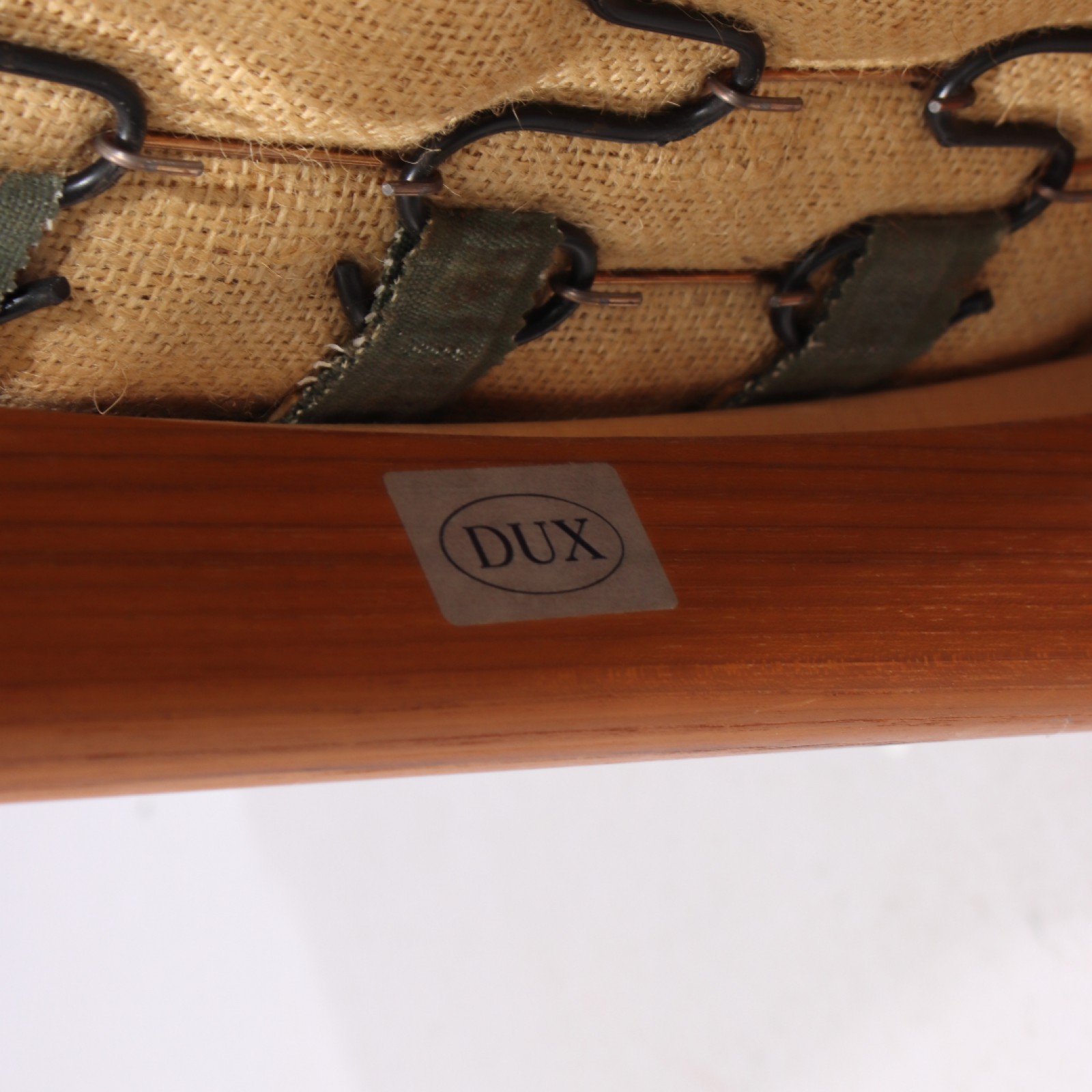 Teak, 1950,60-tal, rygg tidigare med flätad rotting nu med sadelgjord och ryggdyna, Rh.78, B.68, Sh.38-42 cm. (vån3)