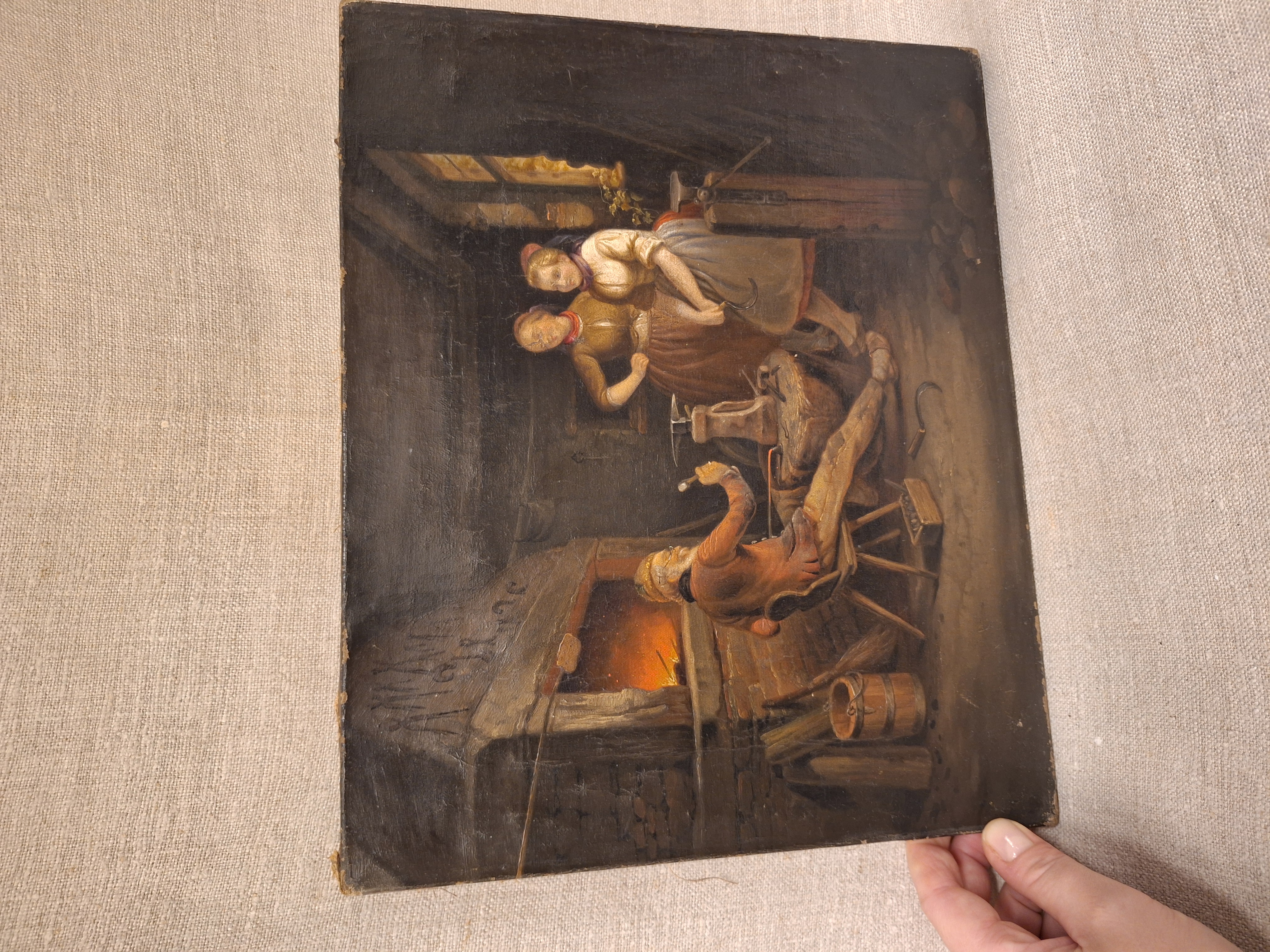 Tavla 1800 tal OPP 2 Kvinnor vid Piano Guldram