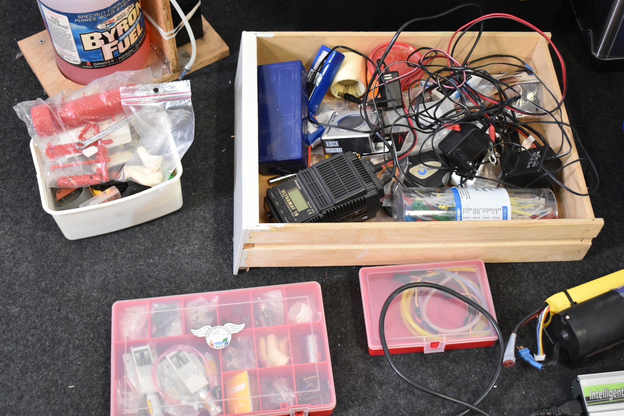 Verktyg och tillbehör till bla modellplansbygge bla verktygslådor 2 st och starter, längsta mått 72 cm