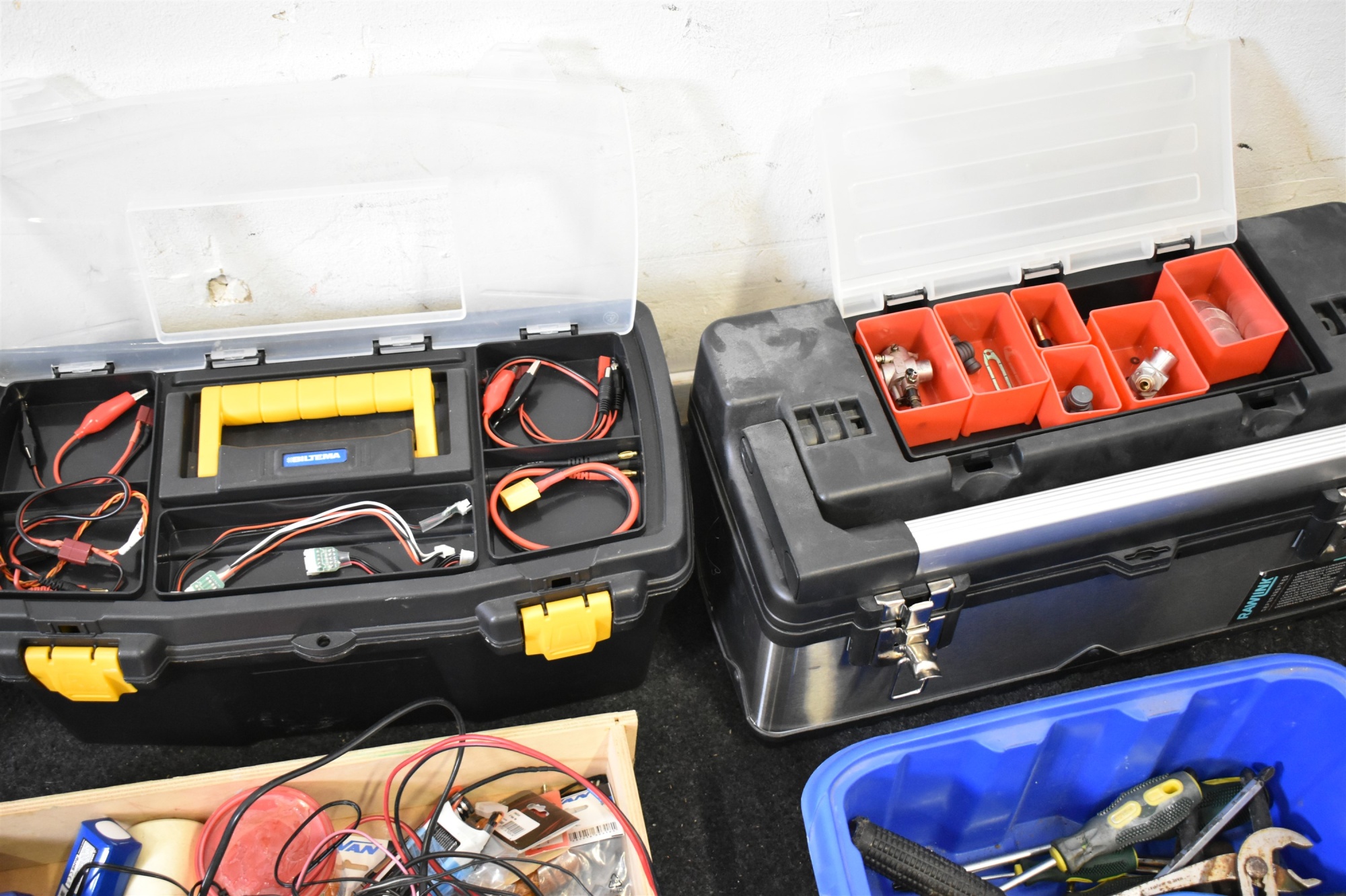 Bilder Verktyg och tillbehör till bla modellplansbygge bla verktygslådor 2 st och starter, längsta mått 72 cm