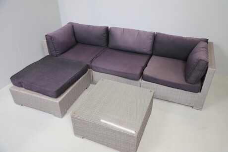Trädgårdsgrupp konstrotting, soffa L=246, bord 72x72 H=36