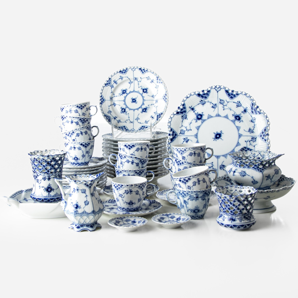 MUSSELMALET KAFFESERVIS, 33 delar, hel och halvblond, porslin, Royal Copenhagen.