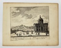 This detailed engraving by Petrus Schenk the Younger depicts the Mount Mary pavilion in the garden of St. Jacob’s Dal. The scene shows figures strolling around the pavilion, with a distant view of hills and a castle on the horizon. The print captures the landscape and architectural style of the period, with fine hatching and detailed depiction of human activity.