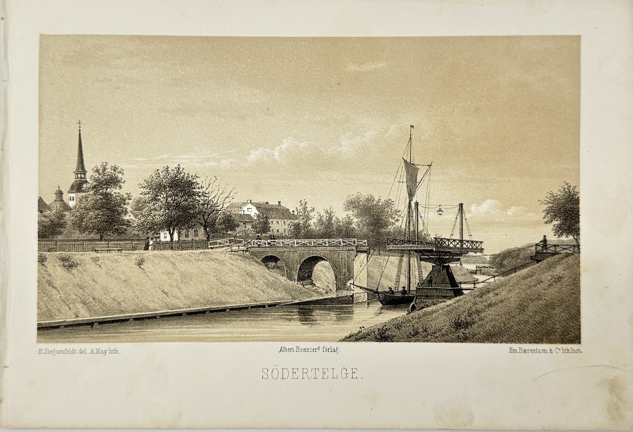 Bilder Frans Theodor Hedberg (1828–1908) – View of Södertelge, Sweden – Chromolithograph from Pittoreskt Sverige (1861)