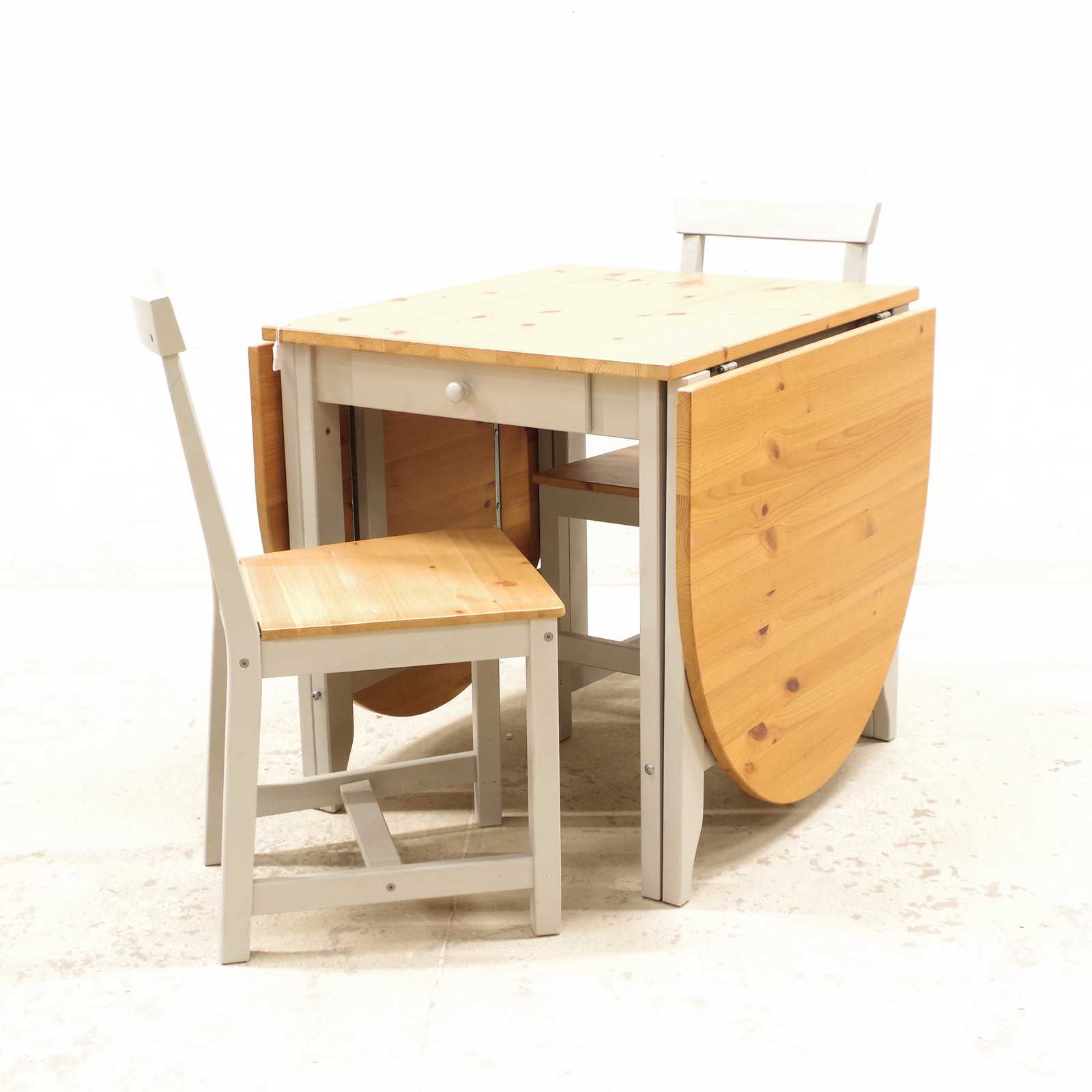 Bilder SITTGRUPP stolar paret & slagbord "Gamleby" Ikea H:74x 78x 67 + två slag 67cm (2st skruvar saknas, spricka i en ribba, se bild)