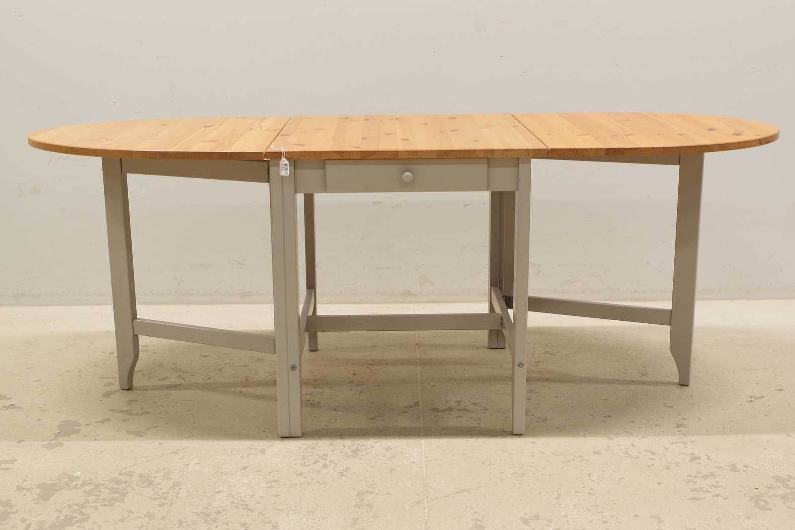 Auktioner SITTGRUPP stolar paret & slagbord "Gamleby" Ikea H:74x 78x 67 + två slag 67cm (2st skruvar saknas, spricka i en ribba, se bild)