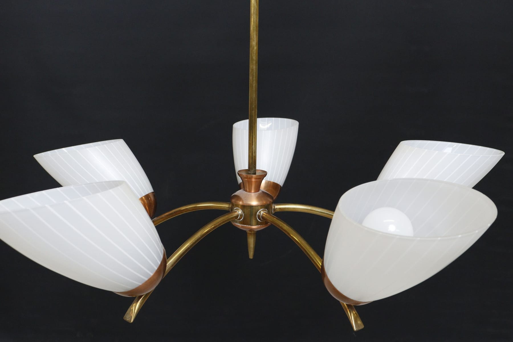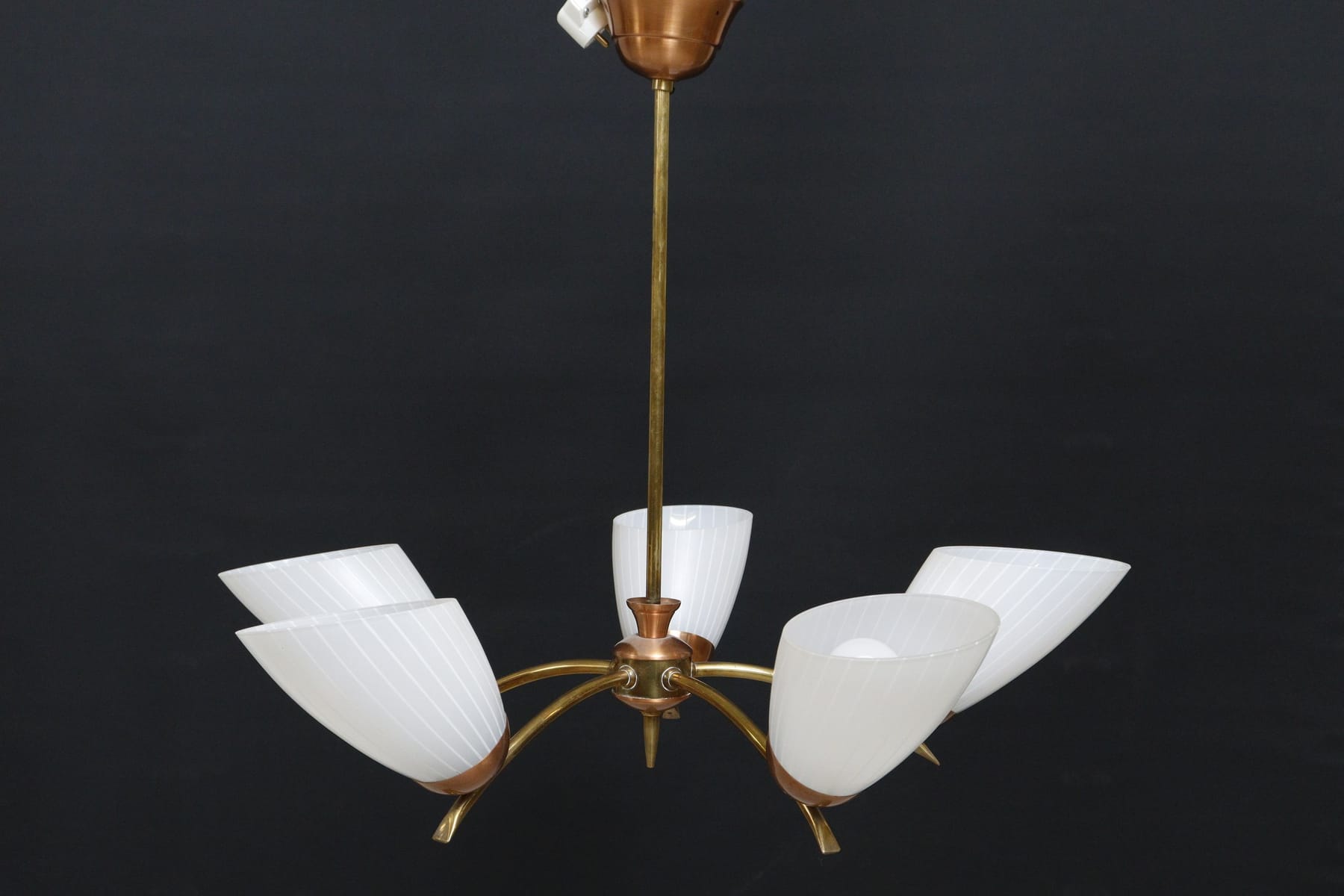 Bilder Taklampa, 5-armad, koppar, mässing och glas