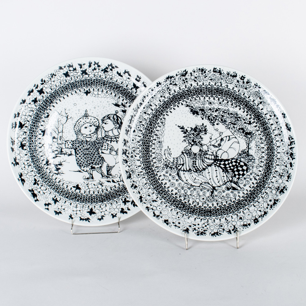 Bilder BJÖRN WIINBLADH, 2 st väggfat, porslin, Nymölle Danmark, 1900-talets andra hälft
