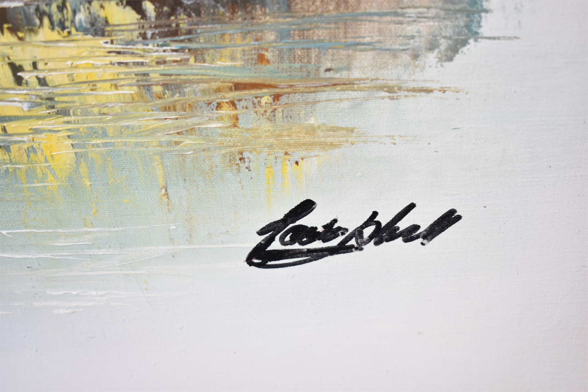Olja pÄ duk, signerad Campbell, fiskelÀge, yttermÄtt 112x82 cm