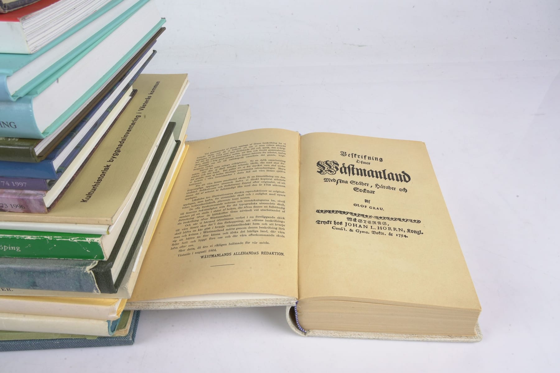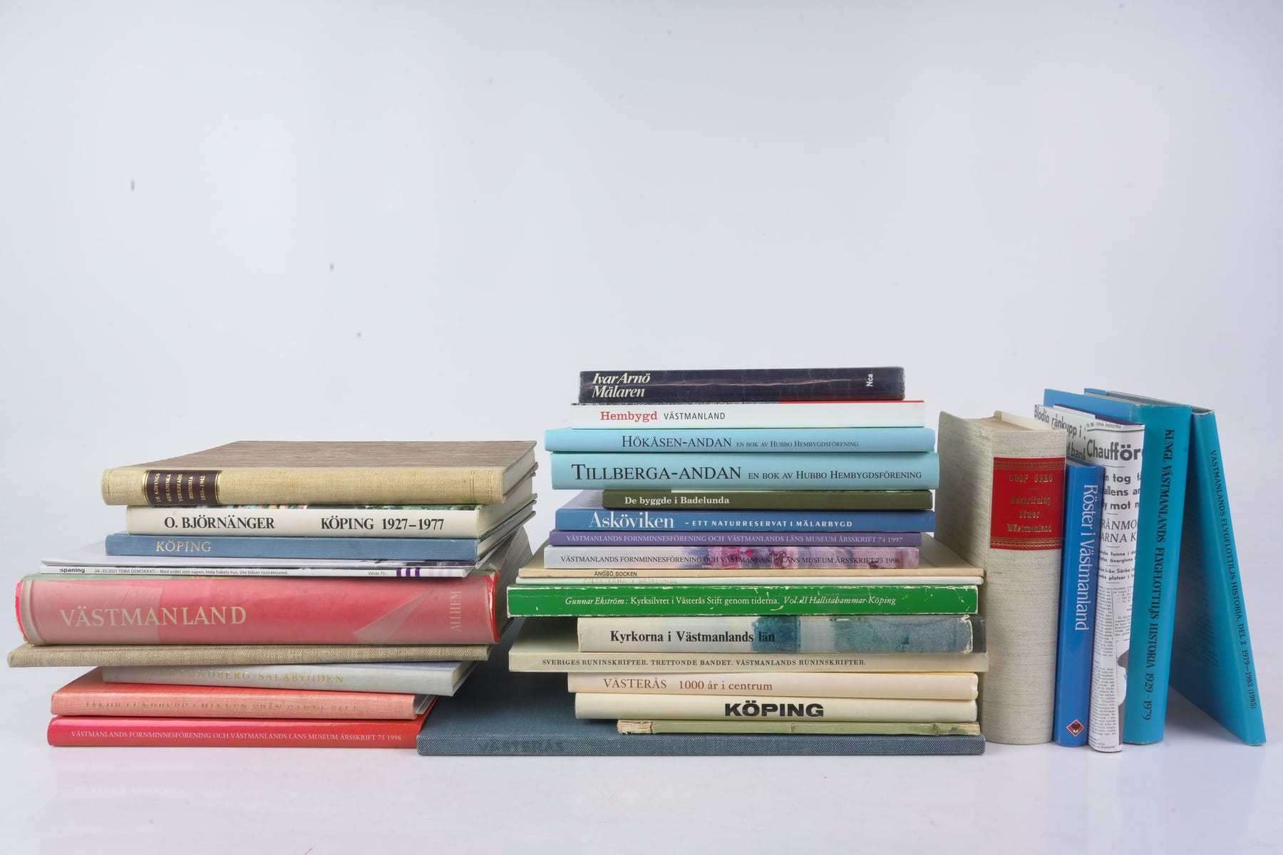 Bilder PARTI med böcker om Västmanland, bl.a. nyutgåva av Olof Grau