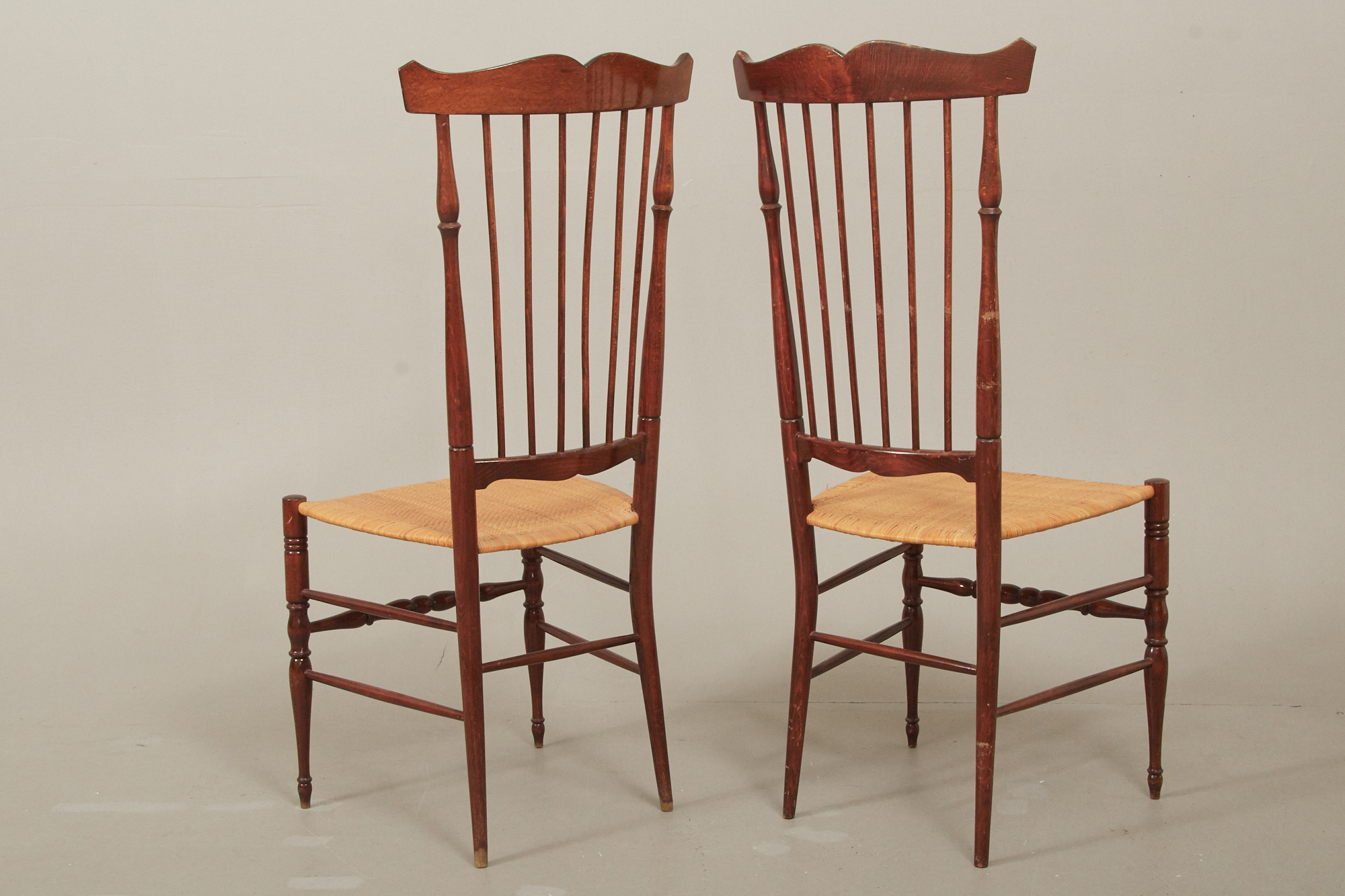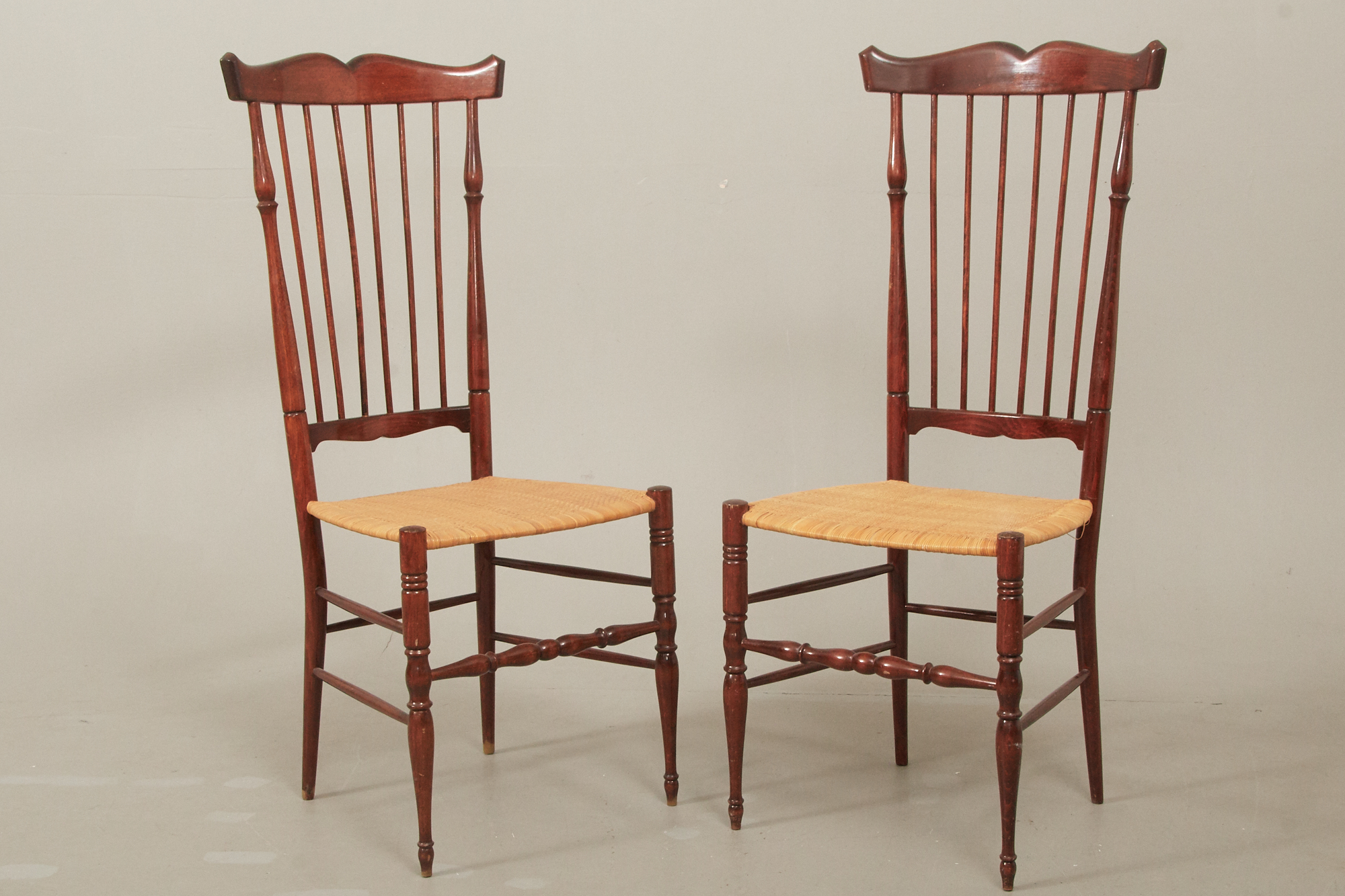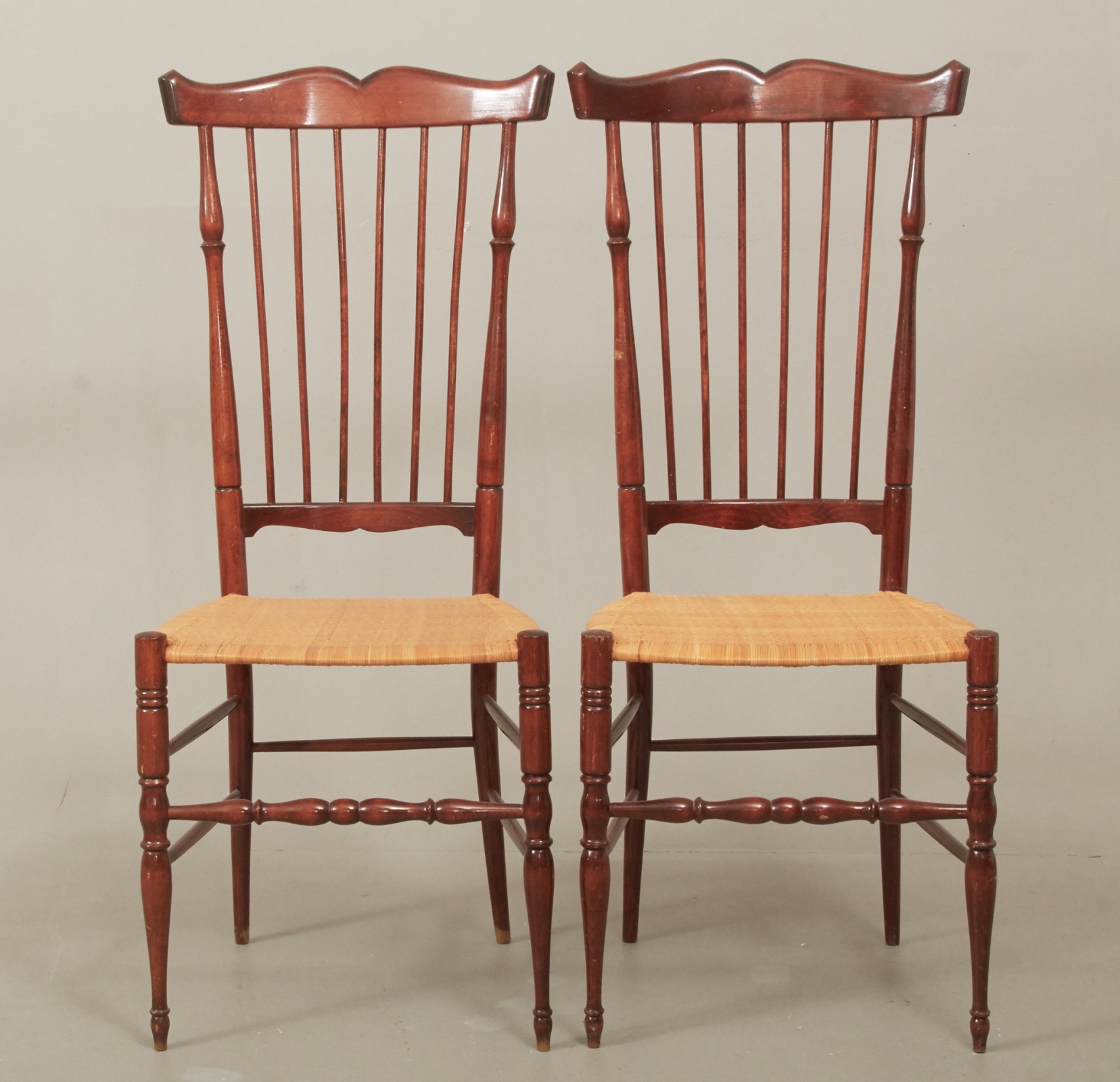 Colmbo Sanguineti, ett par, 1900-talets mitt, trä med flätade sitsar, bruksslitage, mindre märken/skador på ett ryggstöd.