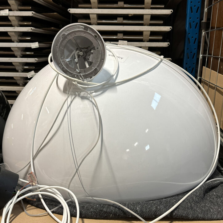 Taklampa/pendal från Flos. Modell Skygardan 2 formgiven av Marcel Wanders. Vit blank utsida. Insida i vit målad innerdifffusor i gjuten gips. Nypris ca 44 000:-