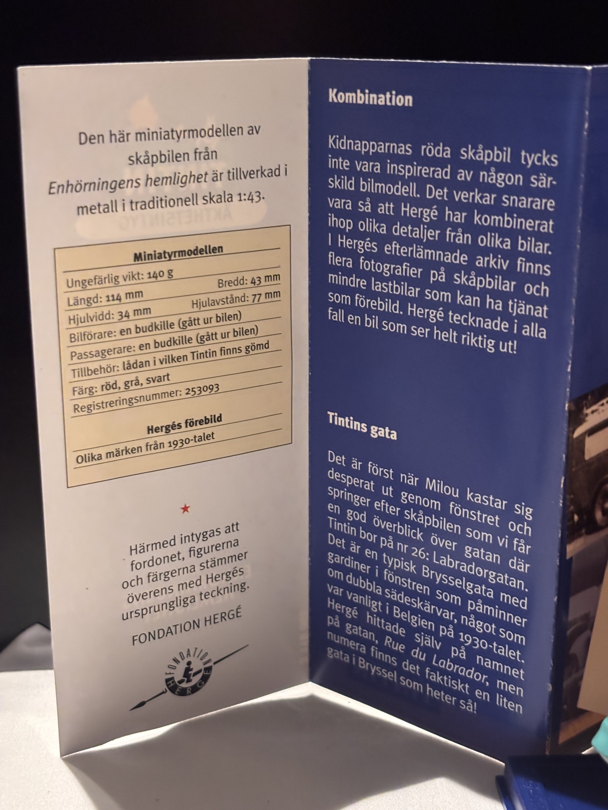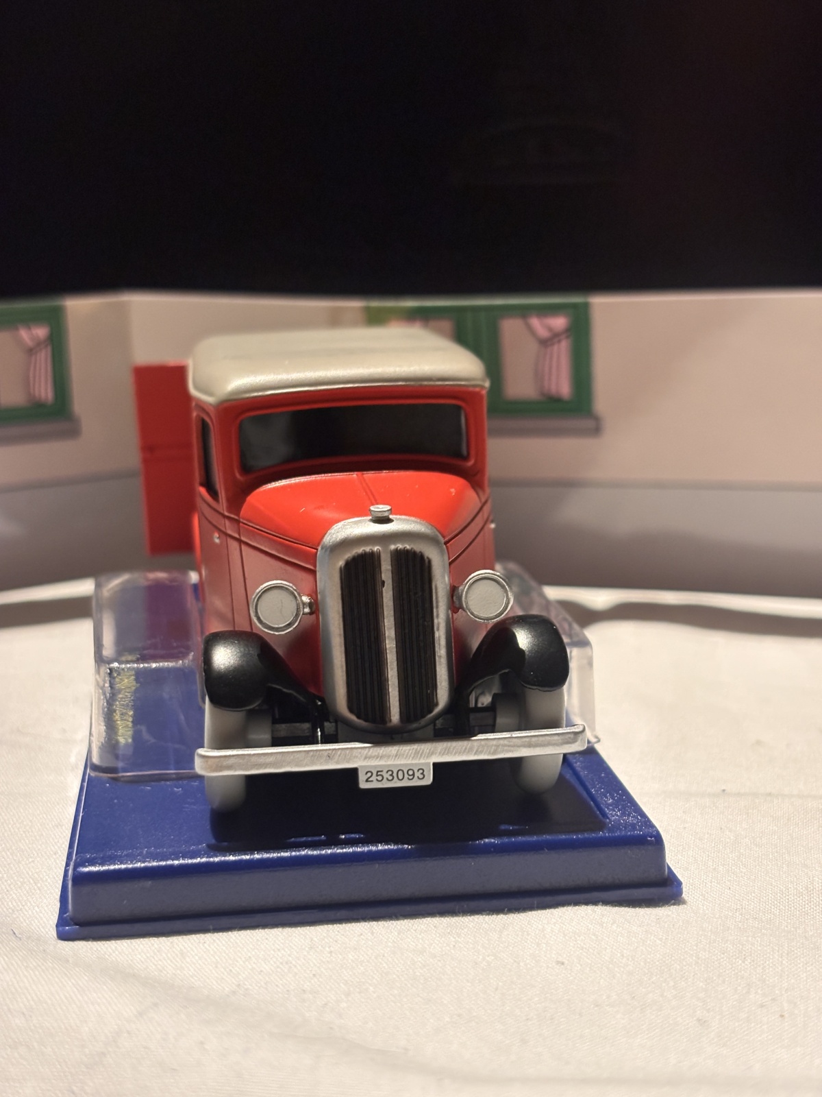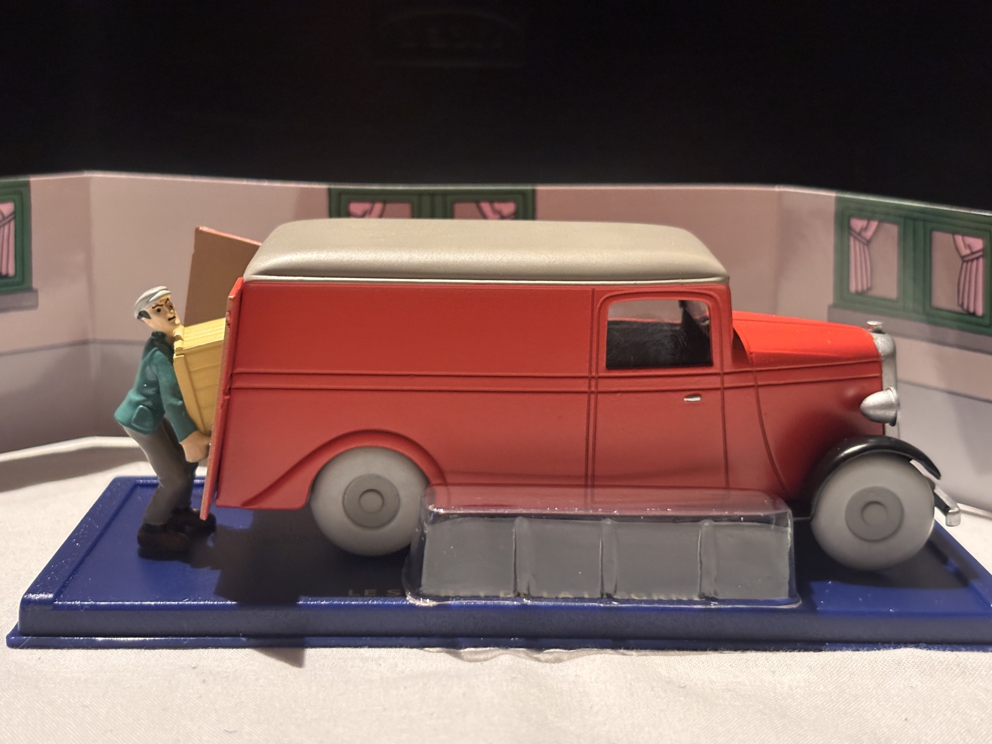 Skåpbil (1930-tal) – Från Enhörningens hemlighet! Kidnapparnas röda skåpbil där Tintin göms i en låda. En modell med autentiska detaljer från 1930-talets mindre lastbilar, här med budkille som förare.