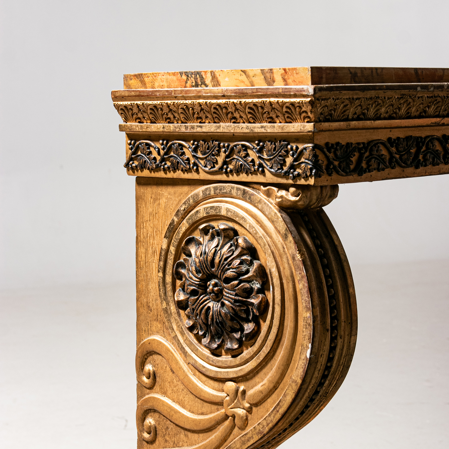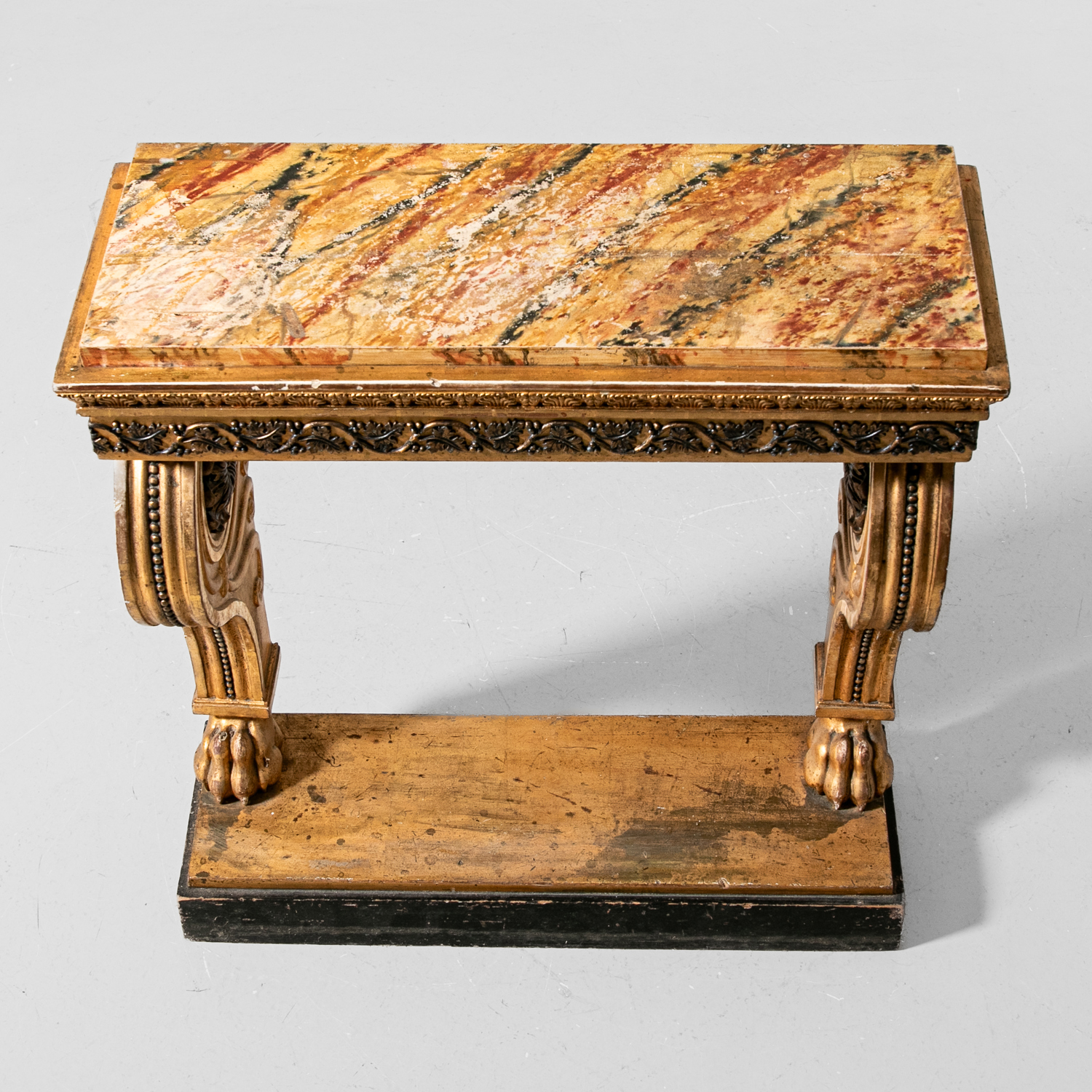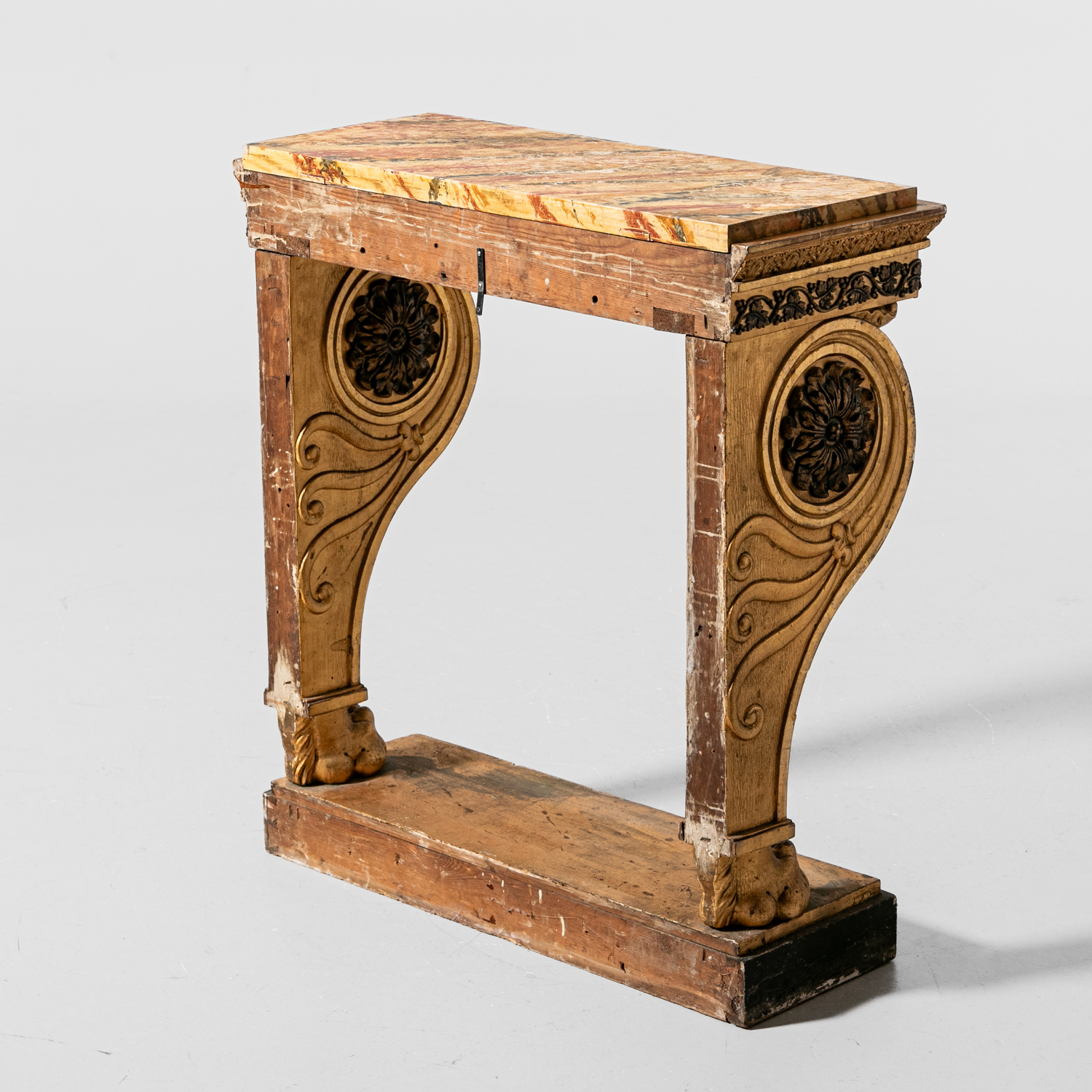 KONSOLBORD, empire, marmorerad skiva, bronserat och förgyllt, svärtade detaljer, 1800-talets första hälft, lejontassar.