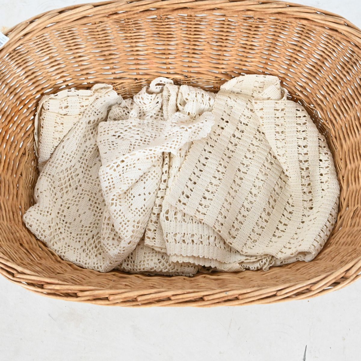 Bilder Tvättkorg med virkade gardiner