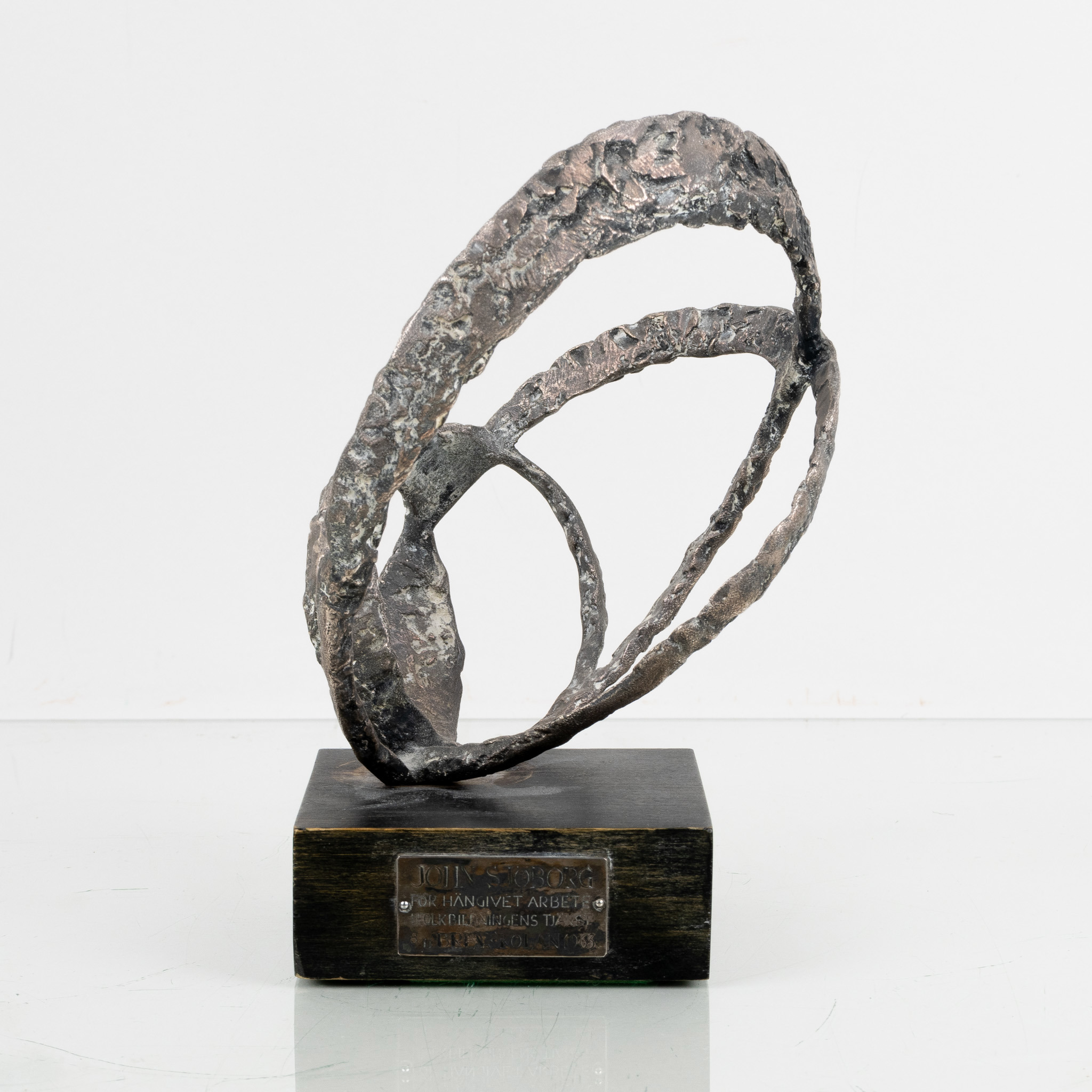 "Rundlar", signerad A Jones NR 26, sockel med senare gåvoplakett från 1963, höjd inkl sockel av trä ca 17 cm