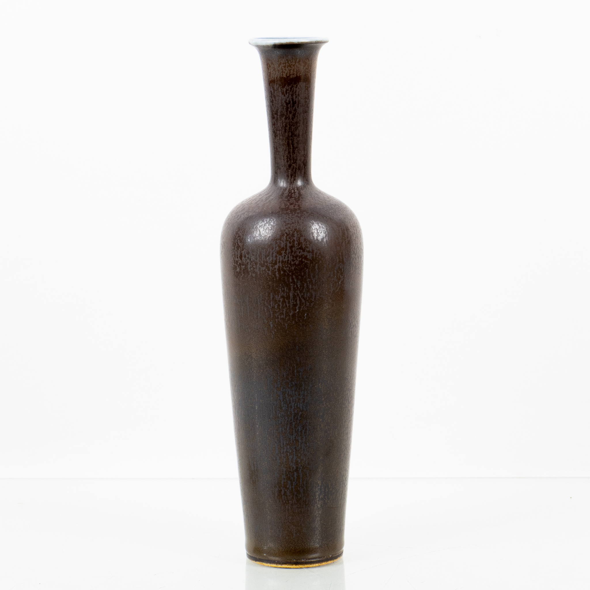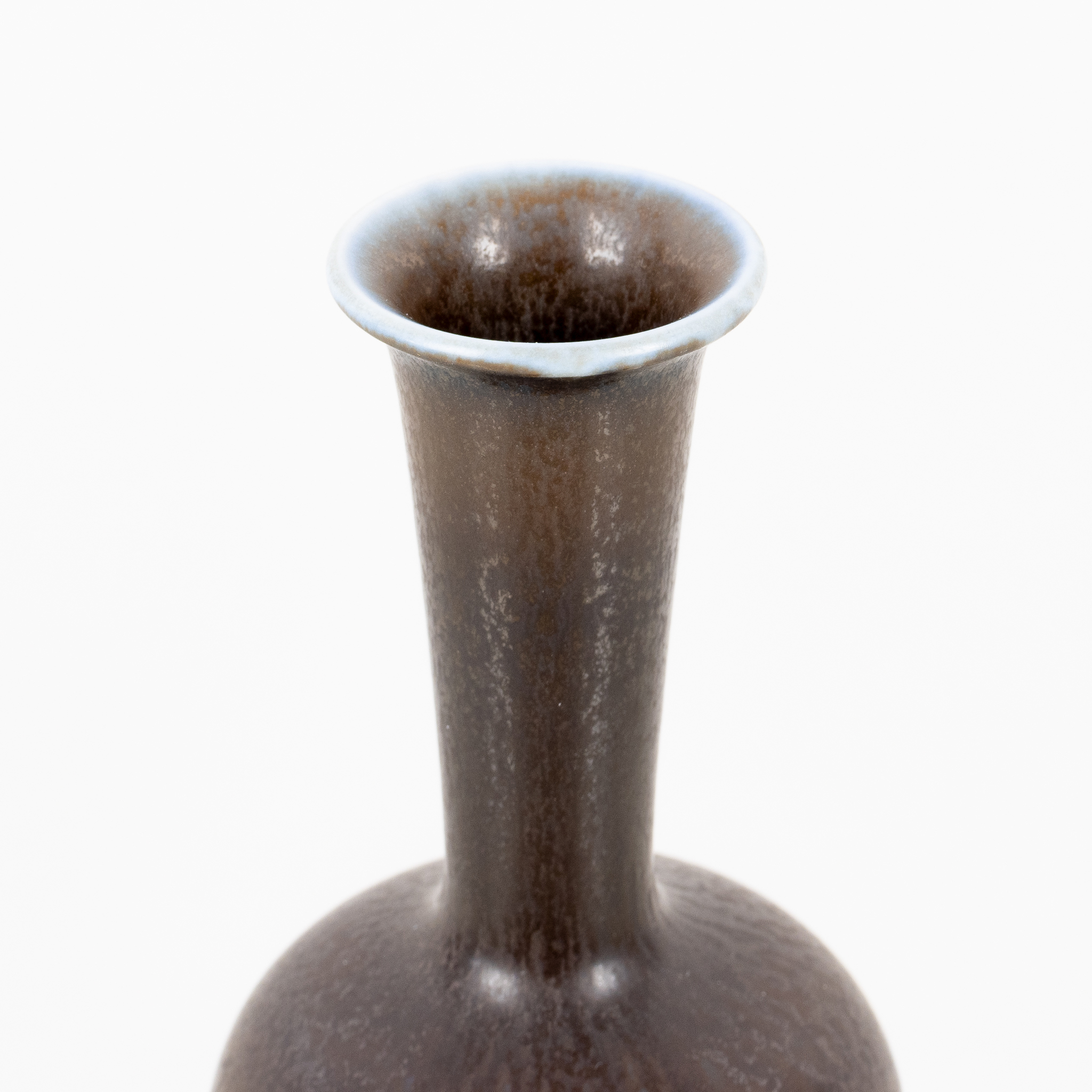 Brun harpälsglasyr med blå mynning, höjd ca 25 cm