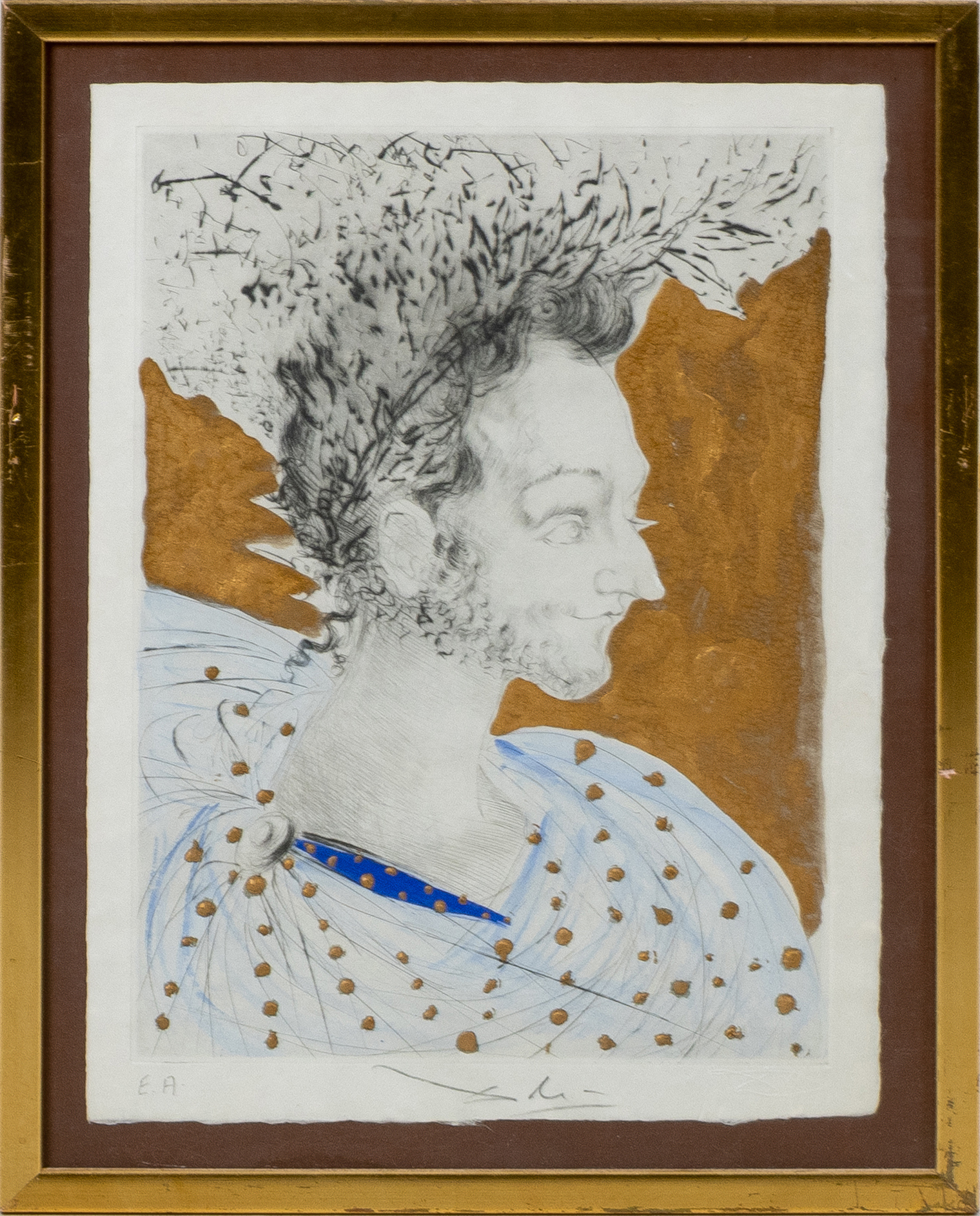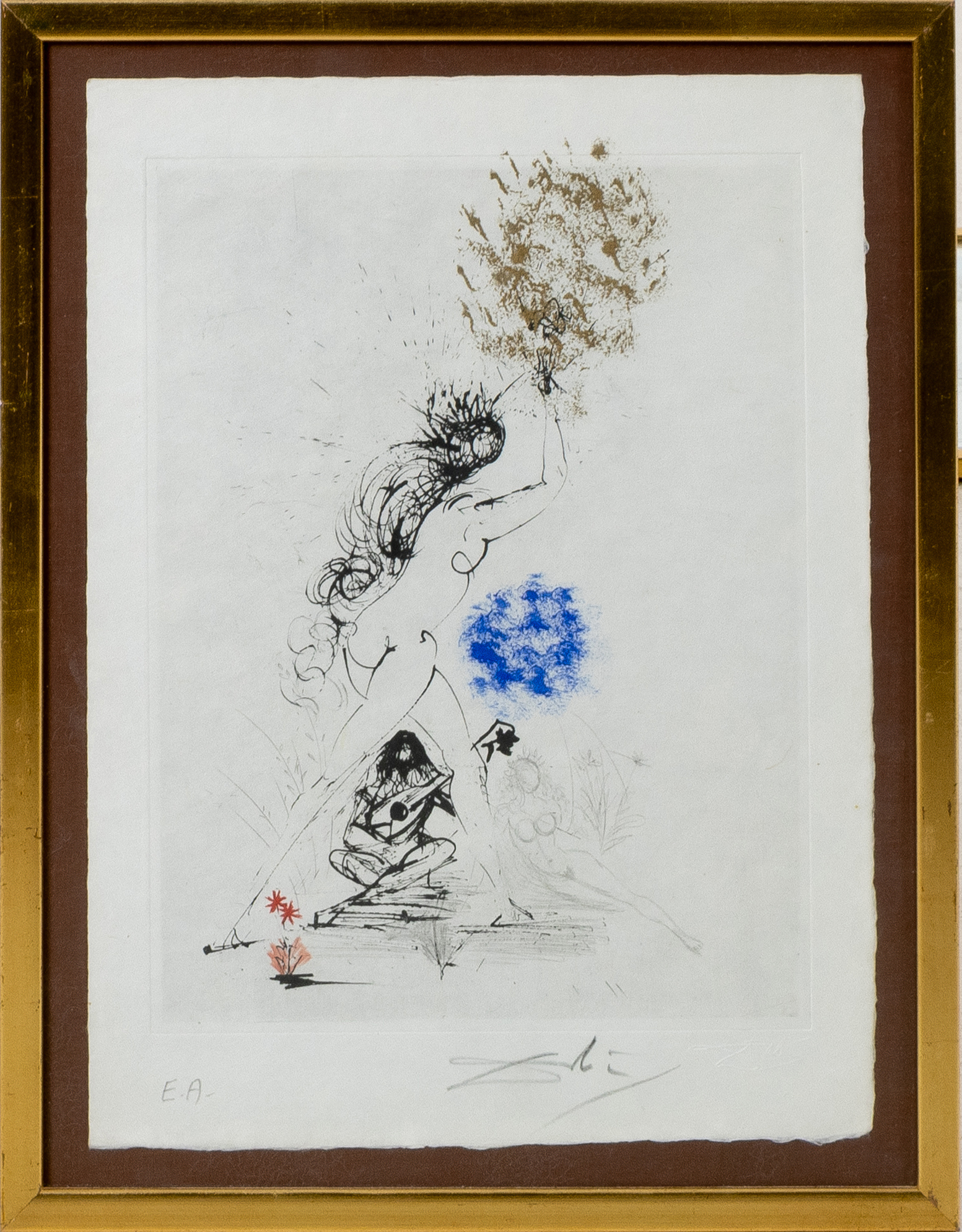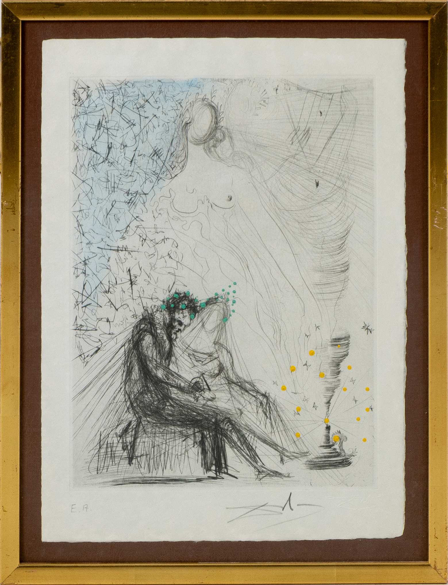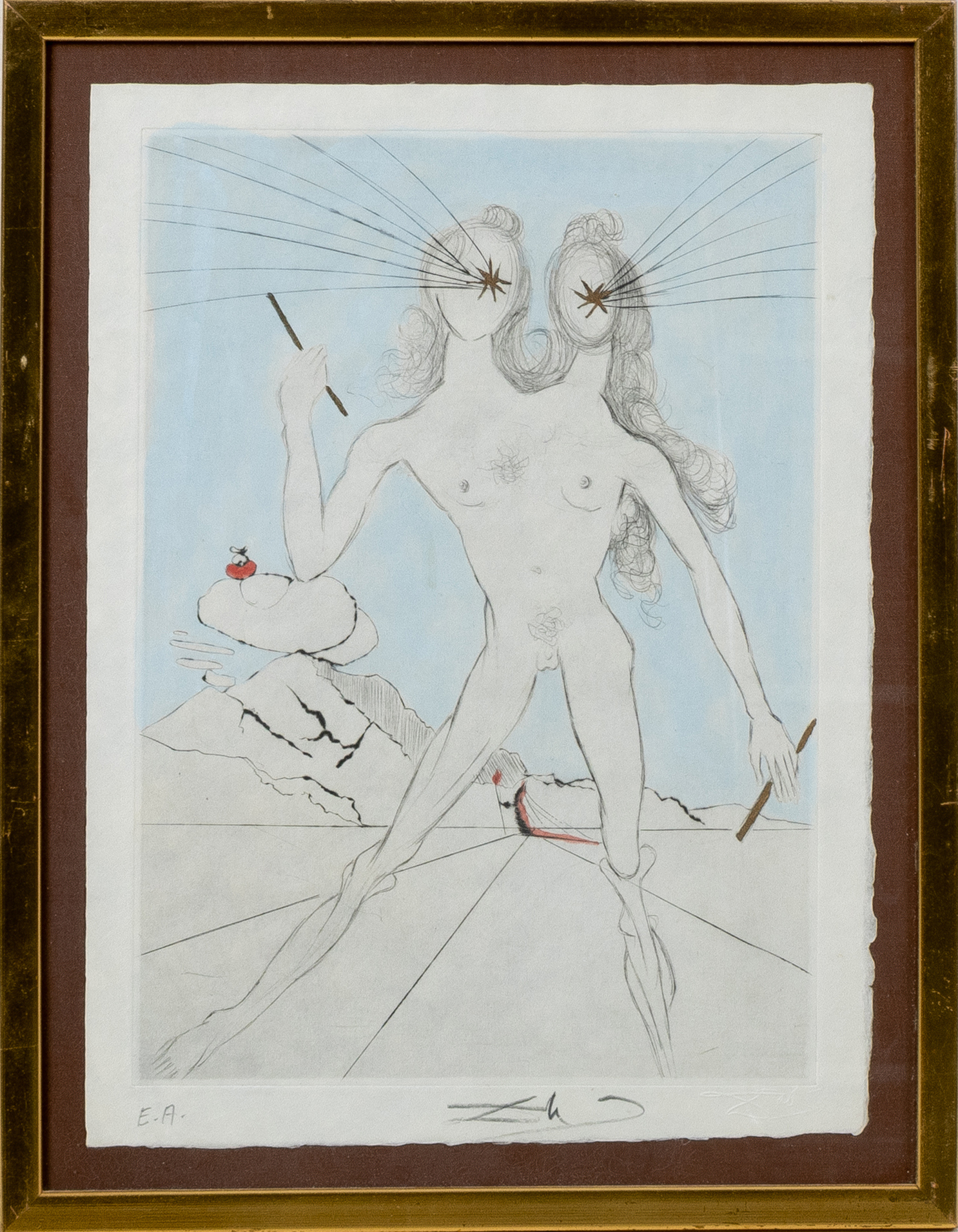 Auktioner SALVADOR DALÍ (1904-1989), 10 st, etsning och torrnål med handkolorering i akvarell, "Les Amours de Cassandre", 1968, signerade samt med blindsignatur