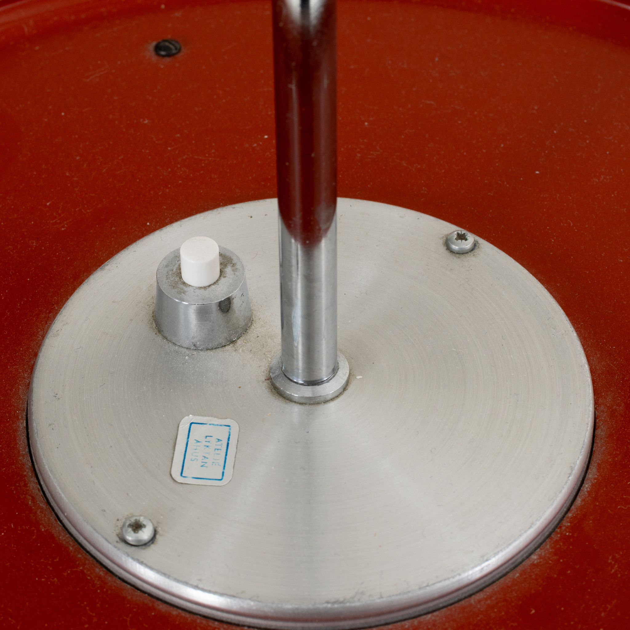 Plåt, tomatröd lackering, raster av plast, höjd ca 22, diameter 40 cm