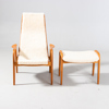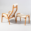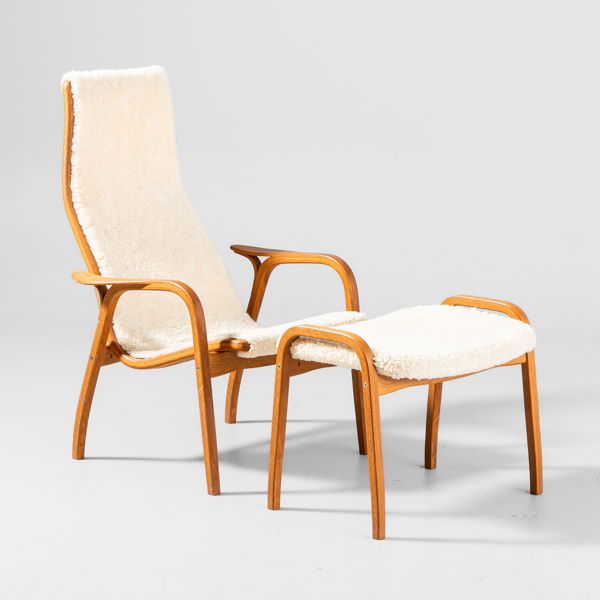 YNGVE EKSTRÖM, "Lamino", fåtölj med fotpall, SWEDESE, ek och fårskinn, brännmärkt.